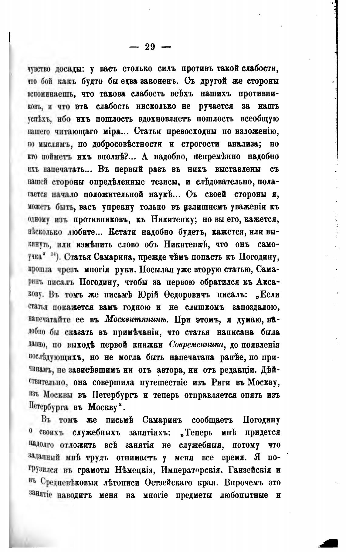 Въ томъ же письмгђ Самаринъ сообщаетъ Погодину