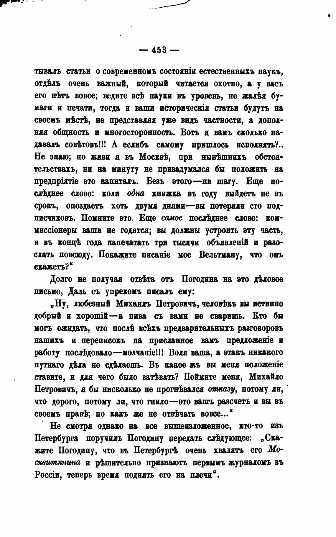 письмо, Даль съ упревомъ писал ему: