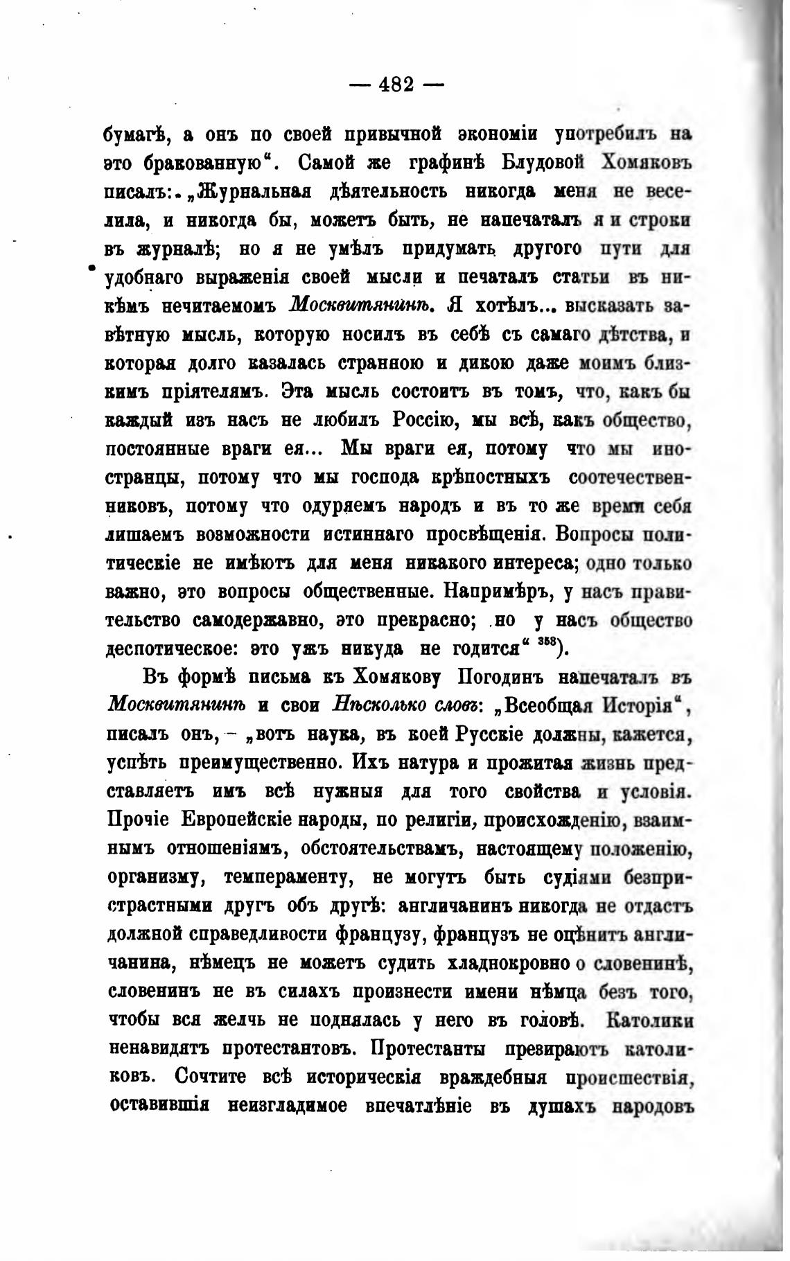 Въ фор“ письма въ Хомякову Погодинъ напечаталъ въ