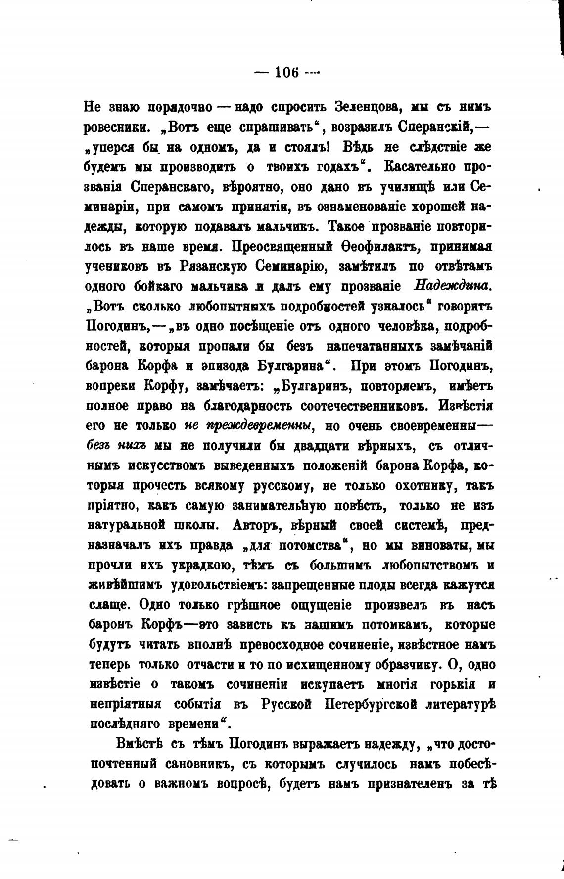 барона Корфа и эпизода Будгарина". При этомъ Погодинъ,