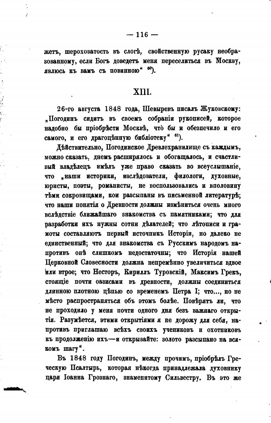 26-го августа 1848 года, Шевыревъ писалъ Жуковскому:
