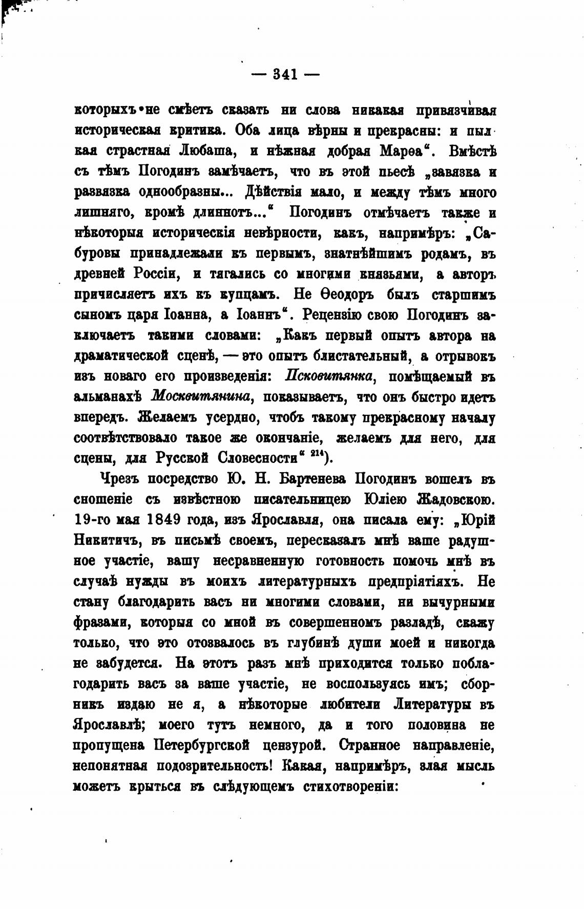 Чрезъ посредство Ю. Н. Бартенев Погодинъ вошелъ въ