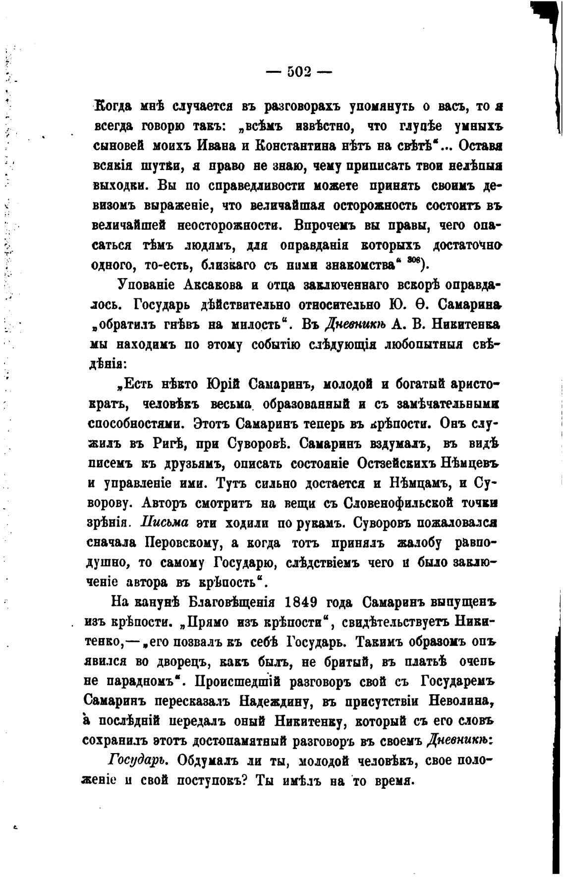 Самаринъ пересказалъ Надеждину, въ Неволина,
