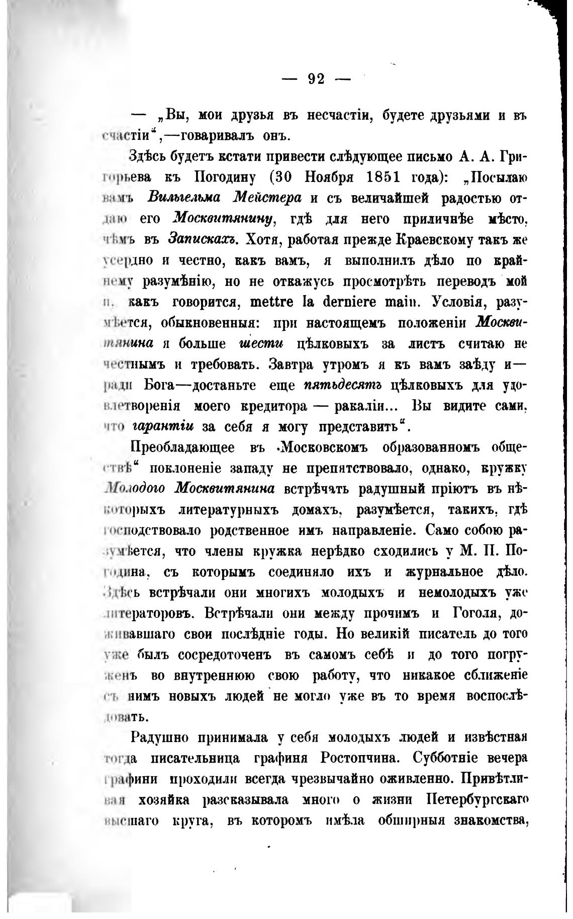 ева Погодину (30 Ноября 1851 года): „Посылаю