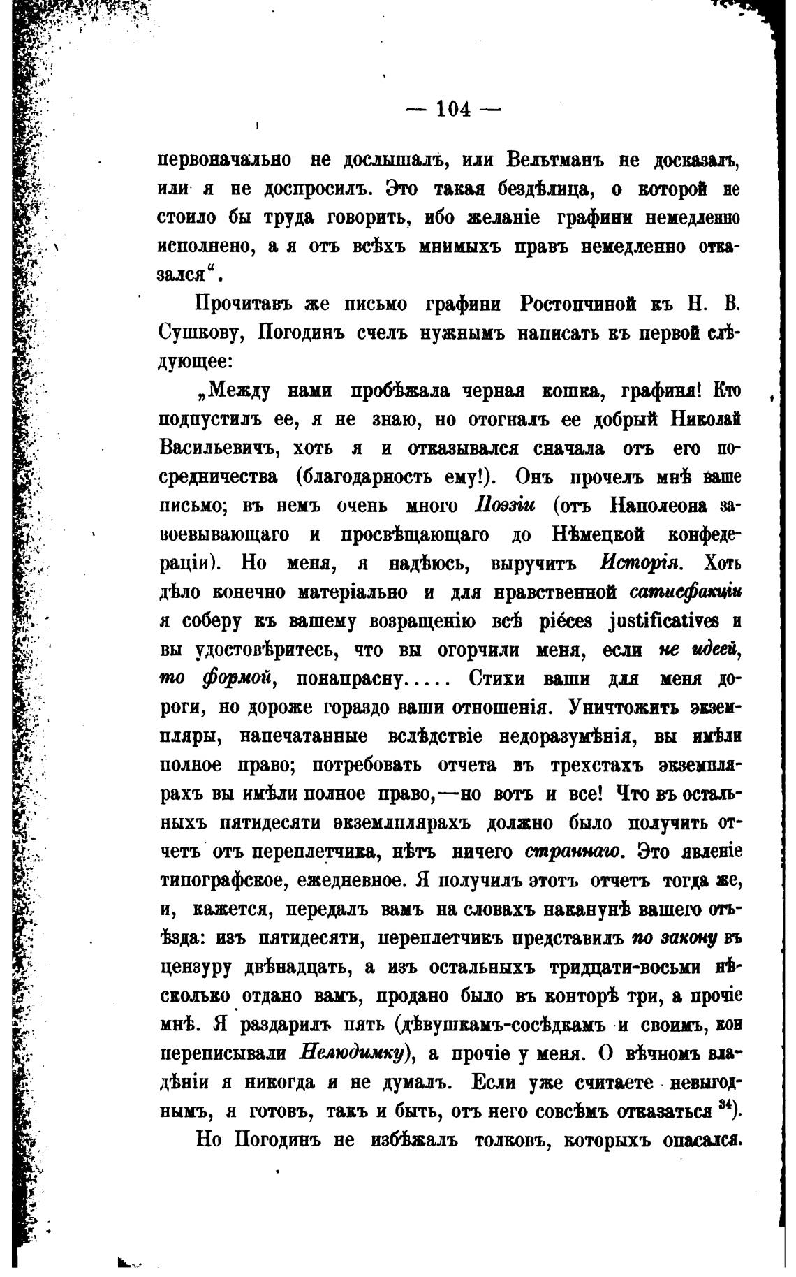 Прочитавъ же письмо графини Ростошшной въ Н. В.