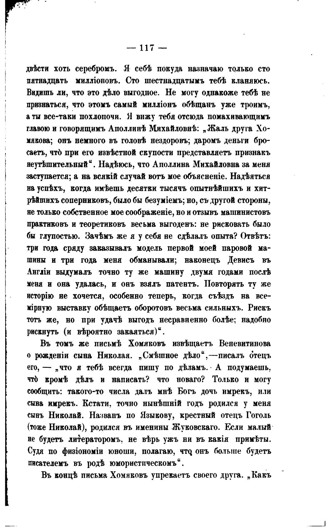 сынъ Николай. Названь по Языкову, крестный отецъ Гоголь