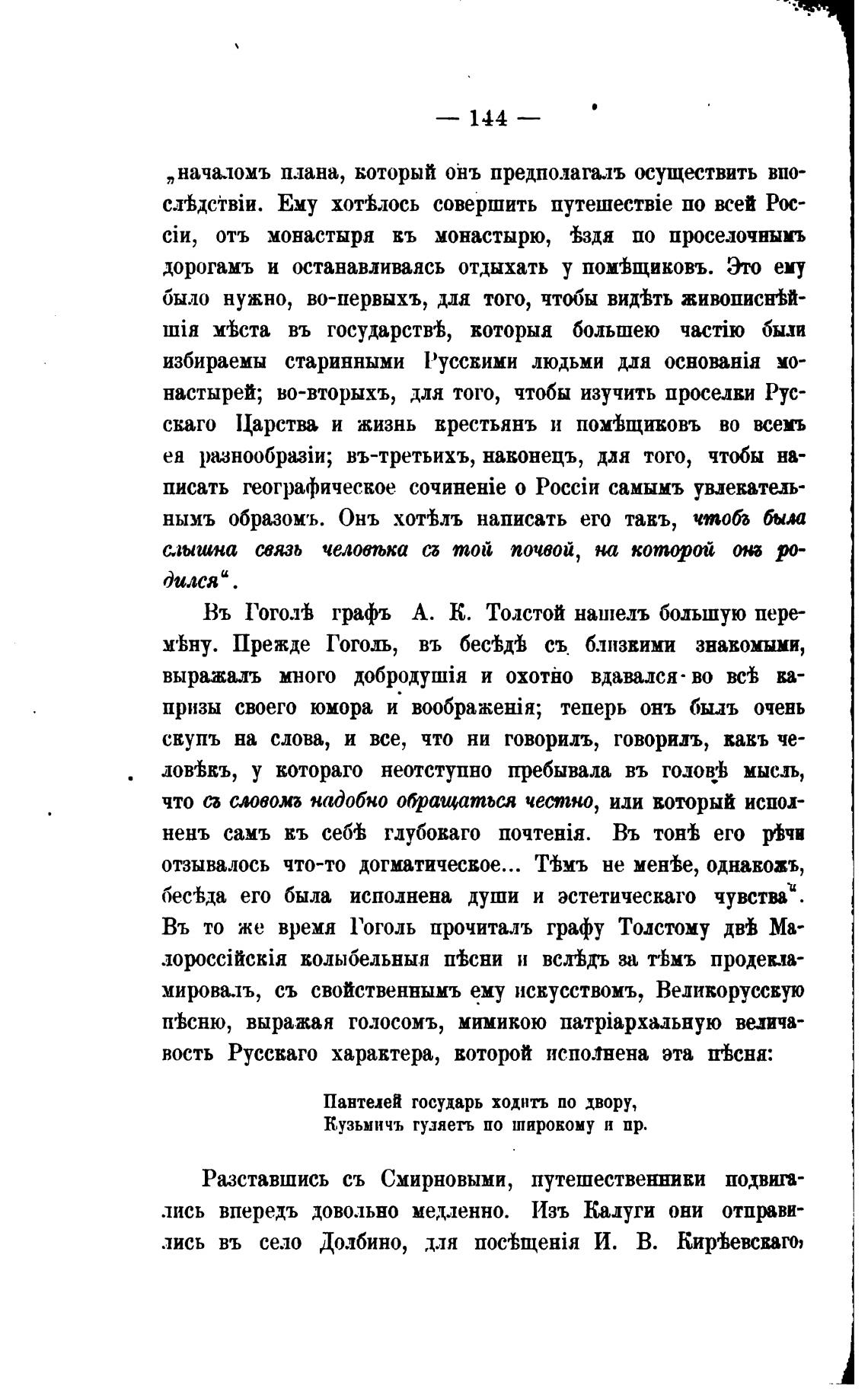 Въ то же время Гоголь прочиталъ графу Толстому двђ Ма-