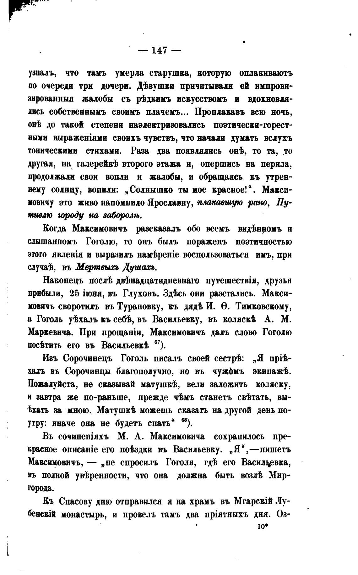 Изъ Сорочивецъ Гоголь писалъ своей сестрФ: „Я прњ-