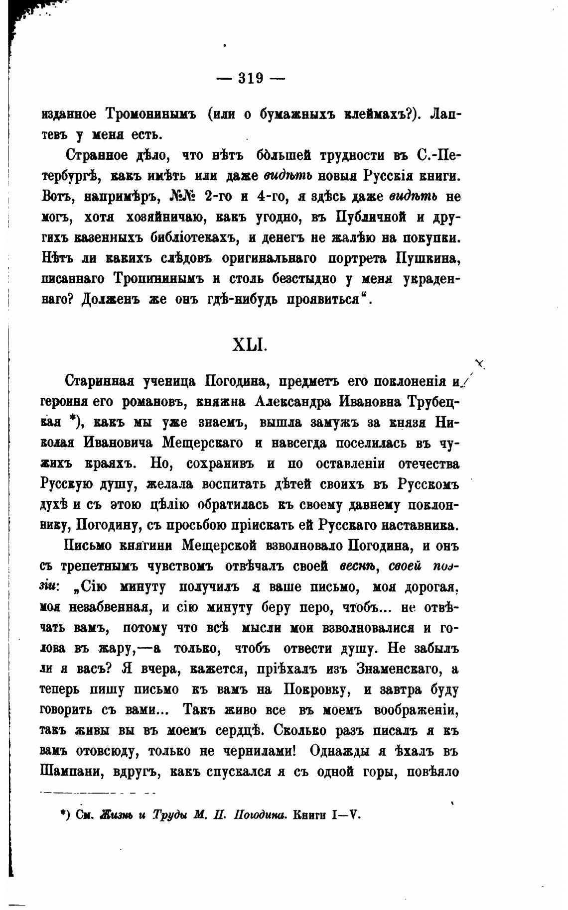 См. Жизнь и Труды М. И. Погодина. Квигн I—V.