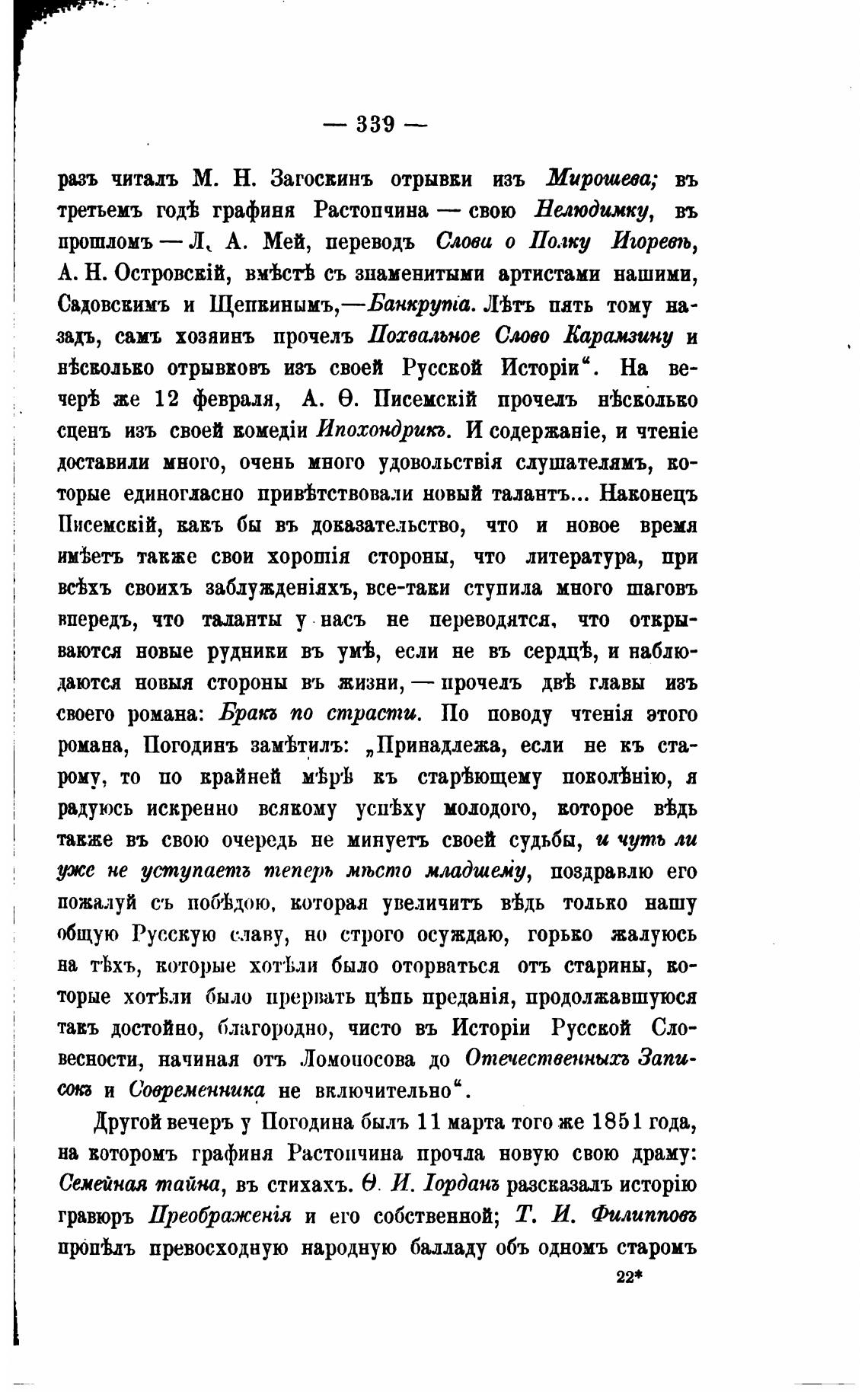 Другой вечерь у Погодина быль 11 марта того же 1851 года,