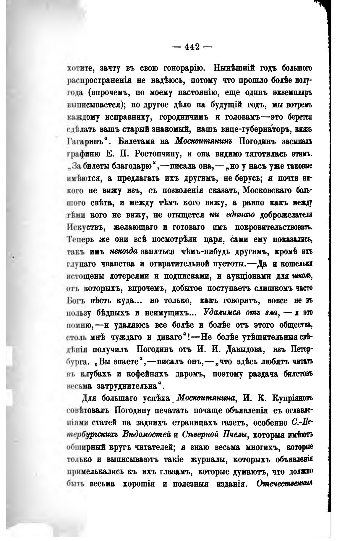 получилъ Погодинъ отъ И. И. Давыдова, изъ Петер-