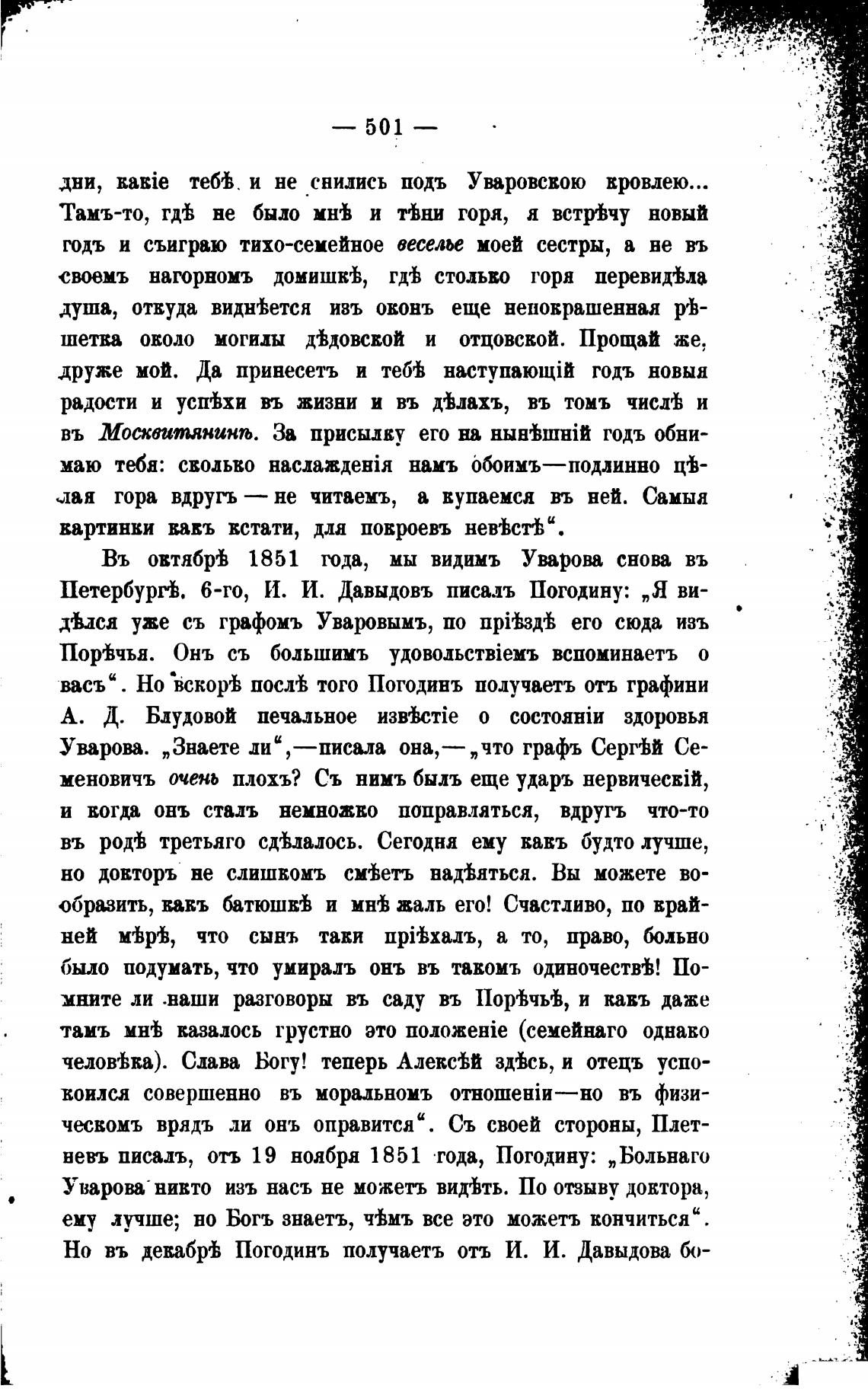 васъ" . Но •вскоргь послгь того Погодинъ получаетъ отъ графини