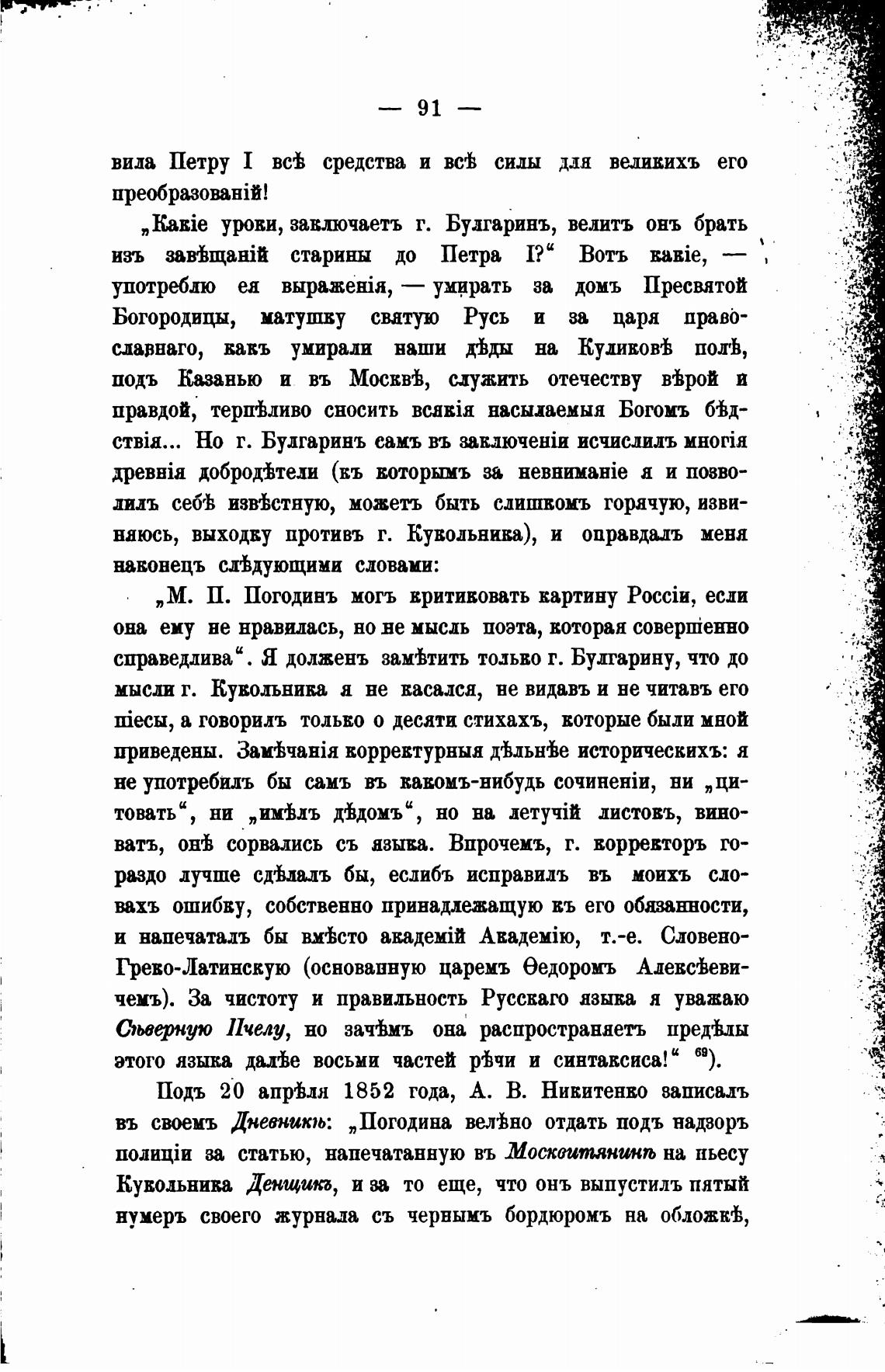М. П. Погодинъ могъ вритивовать картину если