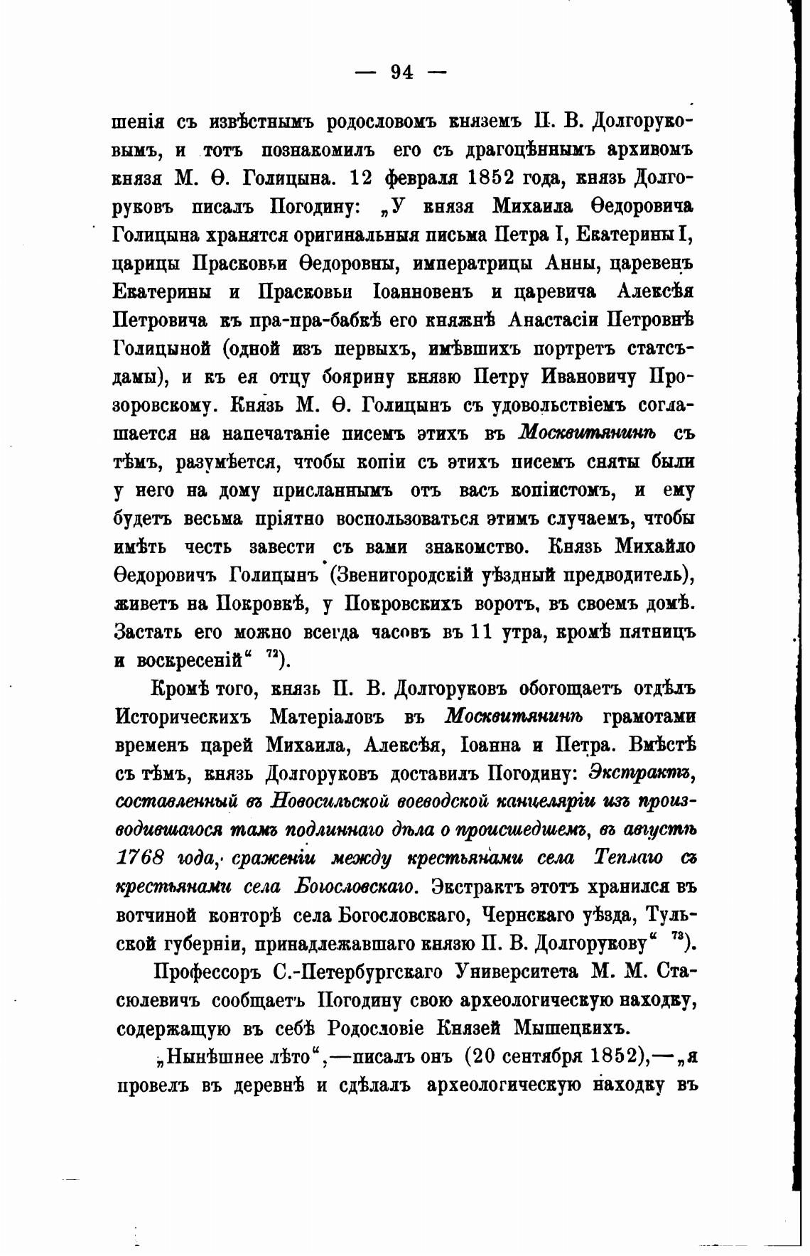 съ тЬмъ, князь Долгоруковъ доставить Погодину: Экстракпи,