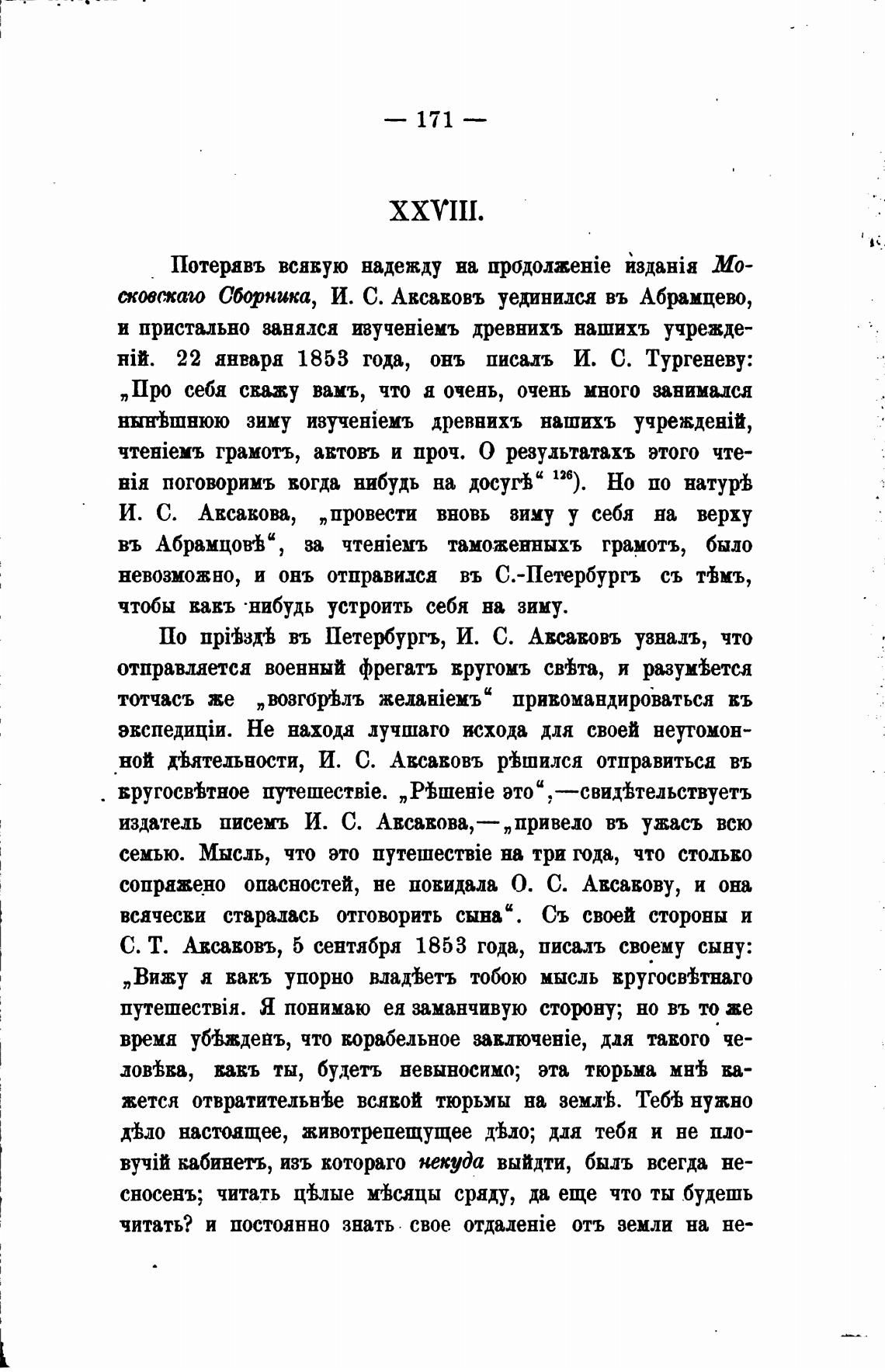 22 анваря 1853 года, онъ писалъ И. С. Тургеневу: