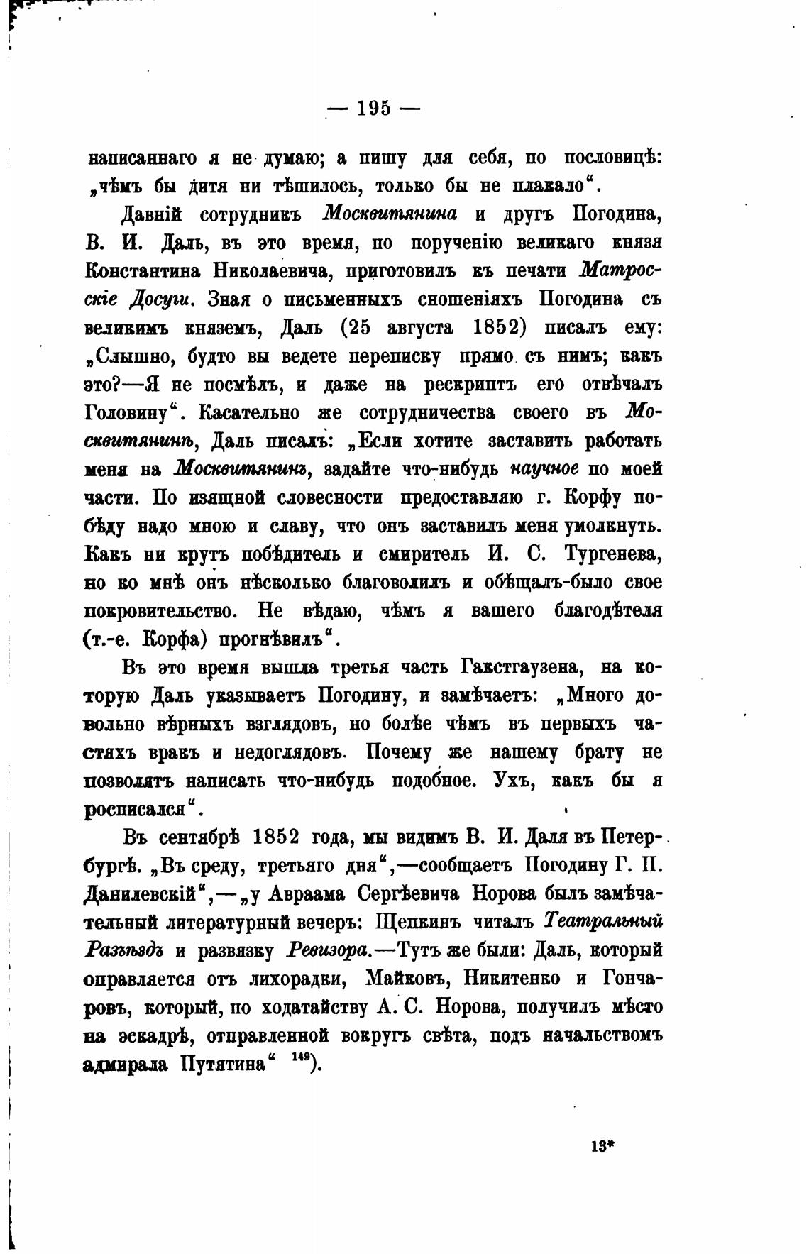 Въ сентабрТ 1852 года, мы видимъ В. И. Дала въ Петер-