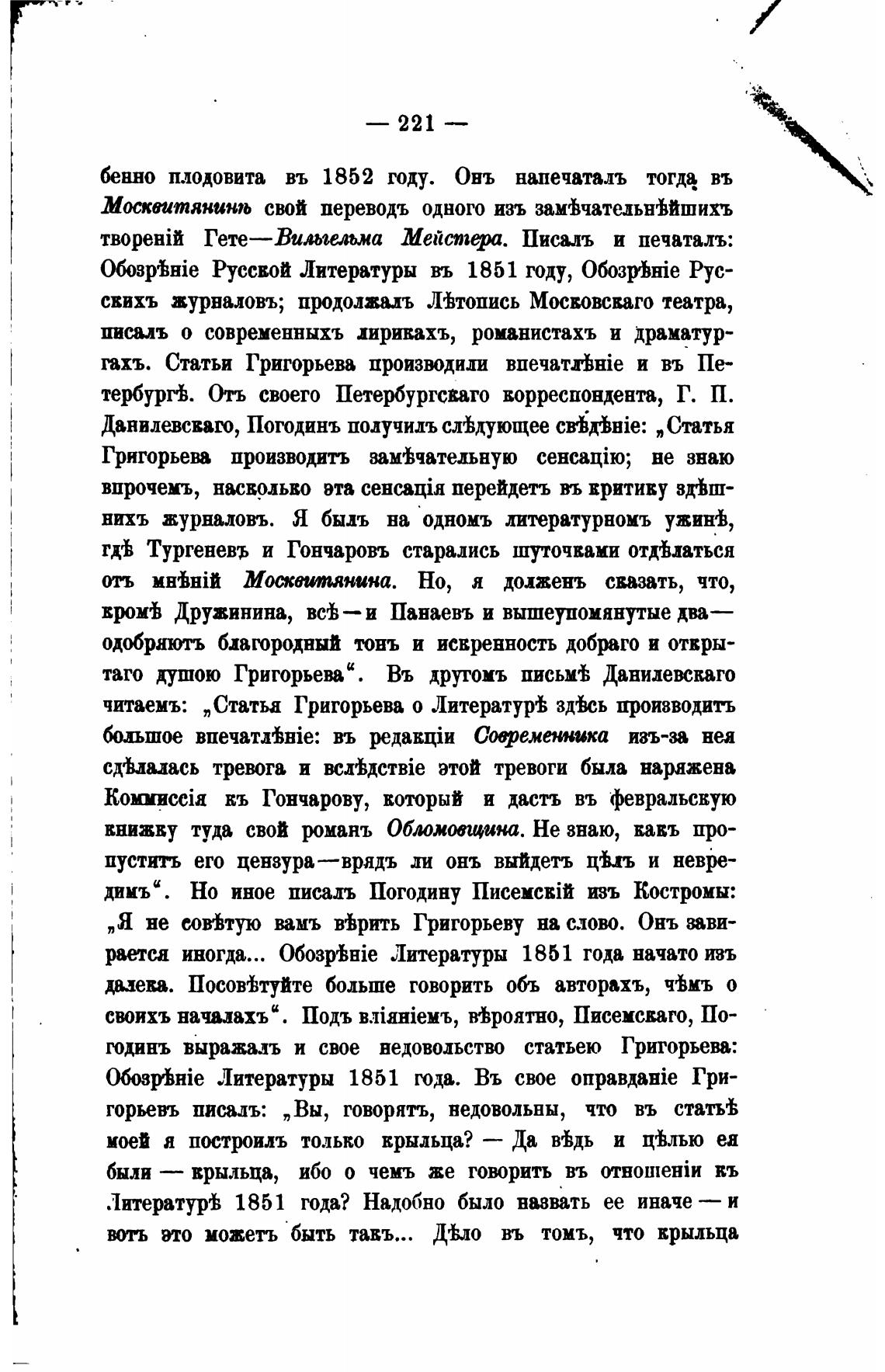 годинъ выража.ть и свое недовольство статьею Григорьева: