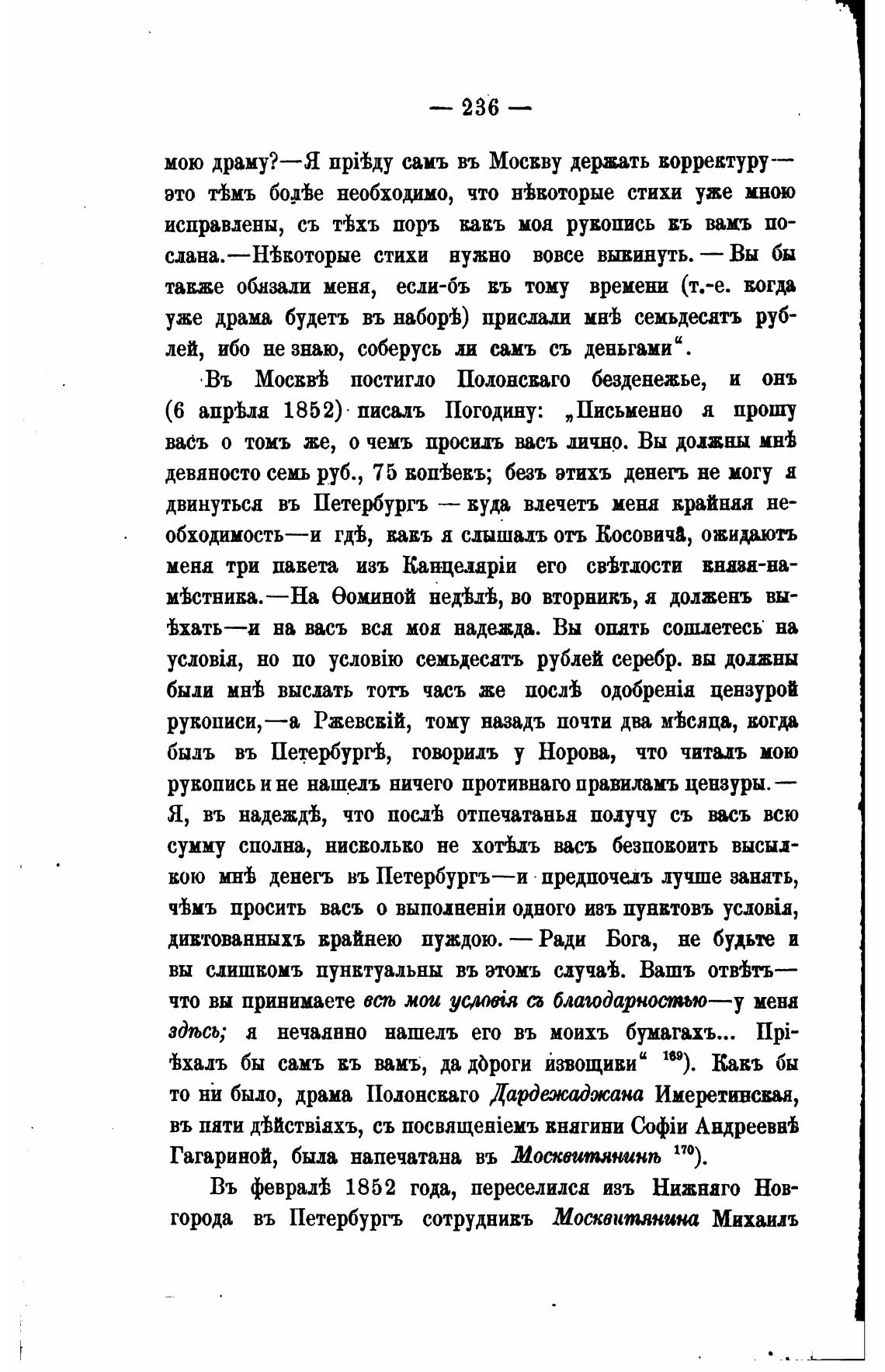 (6 апр'Ьла 1852) • писалъ Погодину: „Письменно я прошу