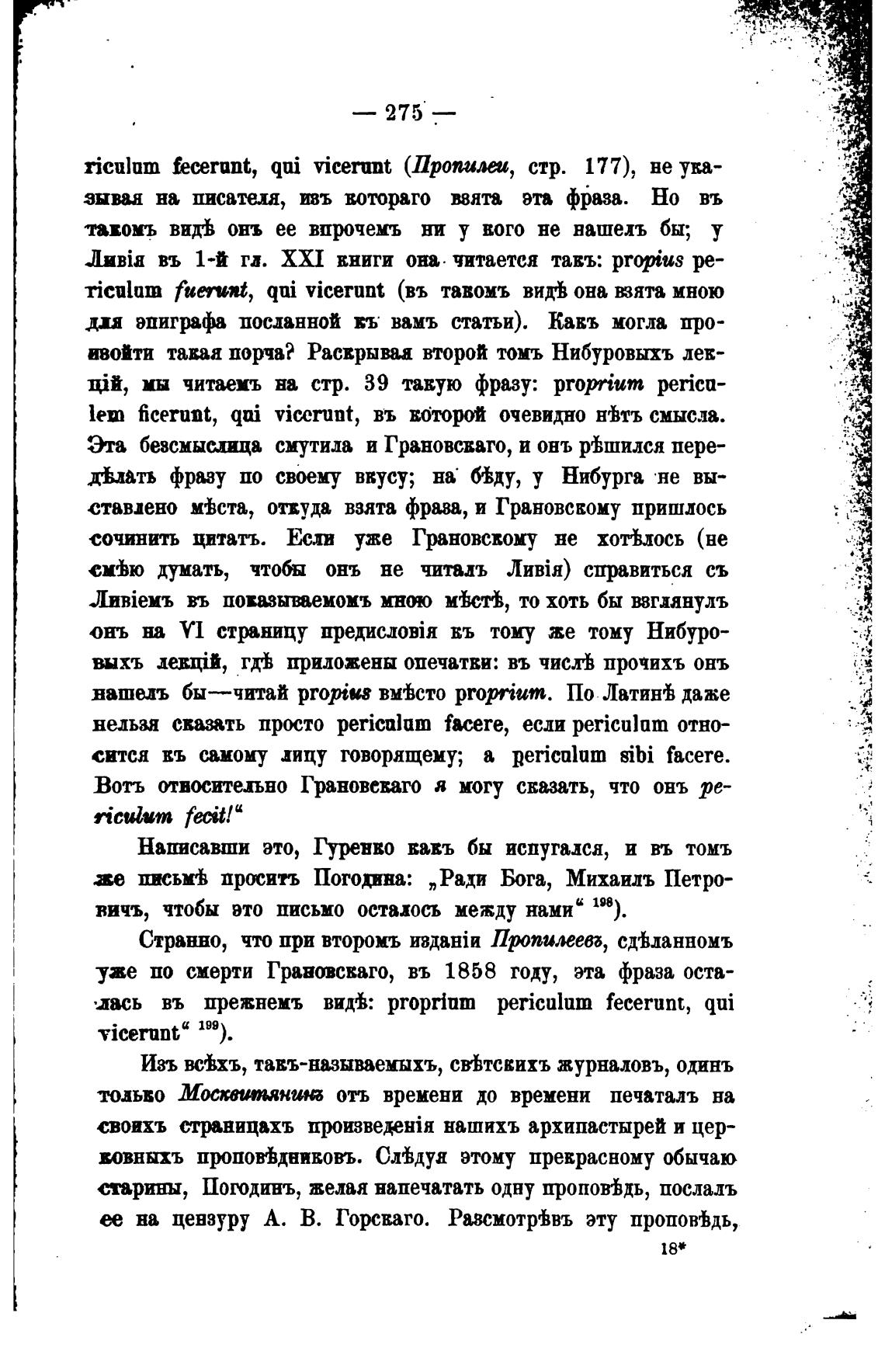 Погодинъ, желая напечатать одну пропойдь, послалъ