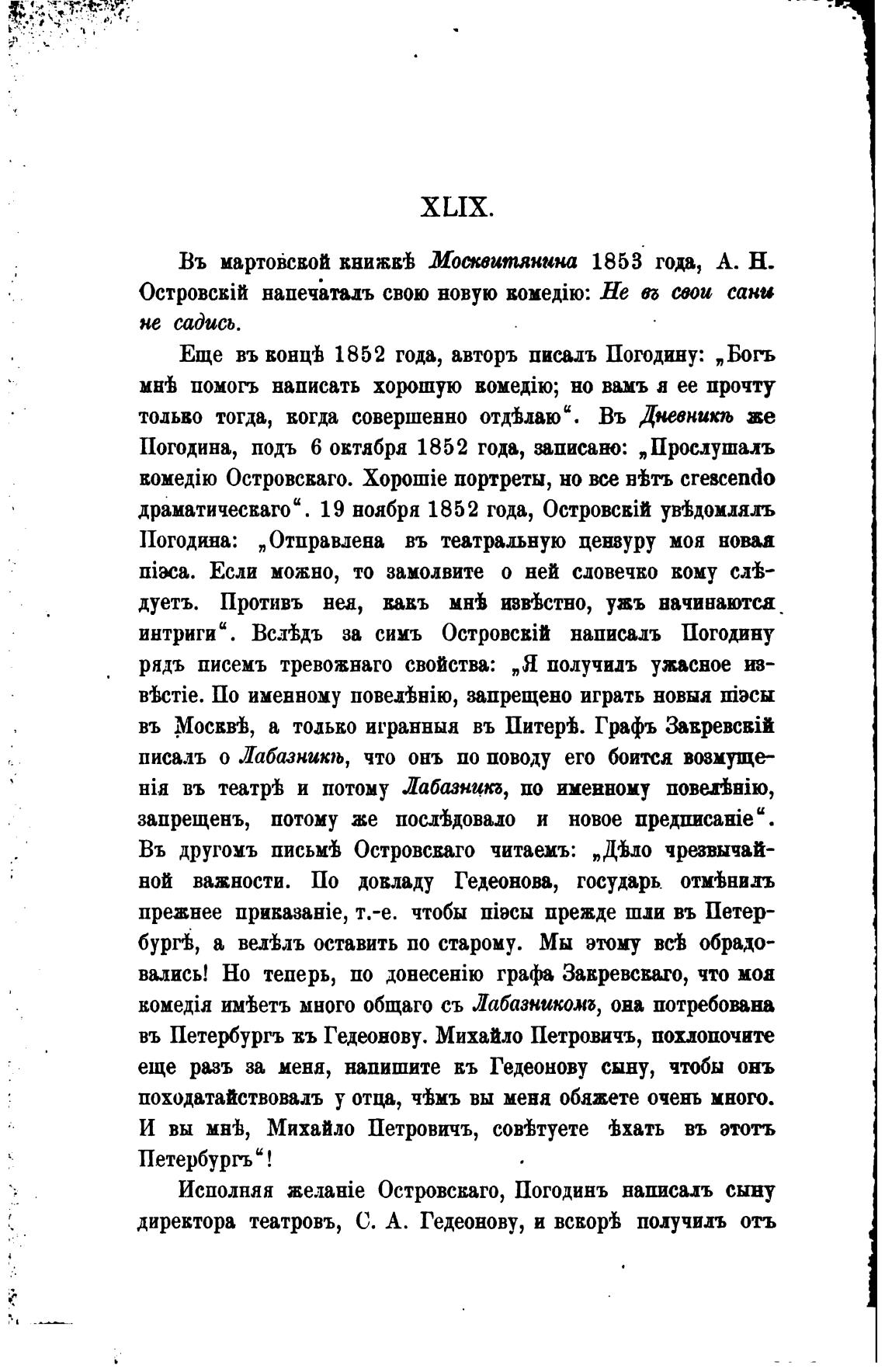 интриги“. Вс.тьдъ за сииъ Островстй написадъ Погодину