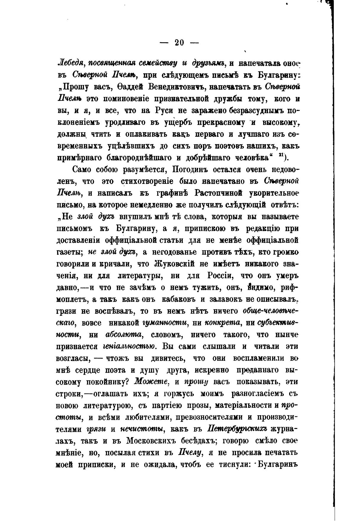 моей приписки, и не ожидала, чтобъ ее тиснули: • Булгаринъ