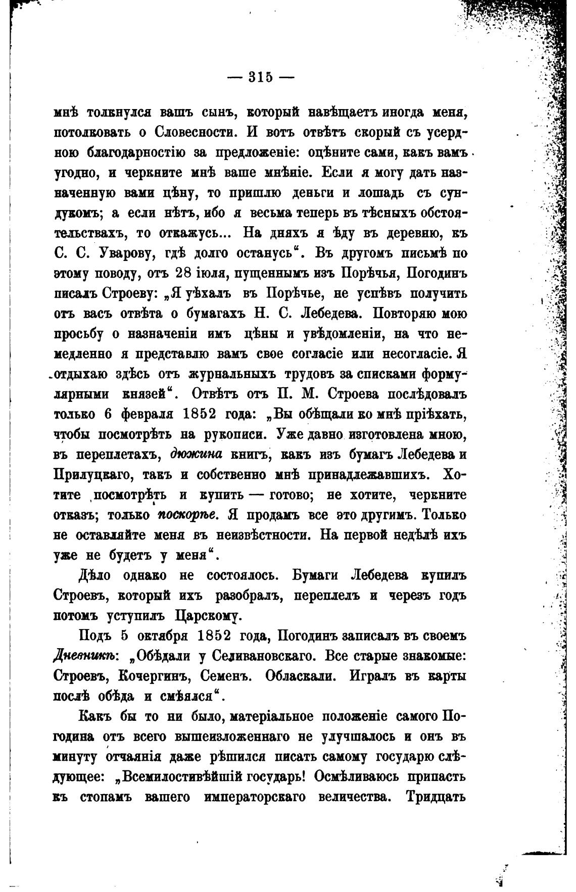 Подъ 5 октабря 1852 года, Погодинъ записал въ своемъ