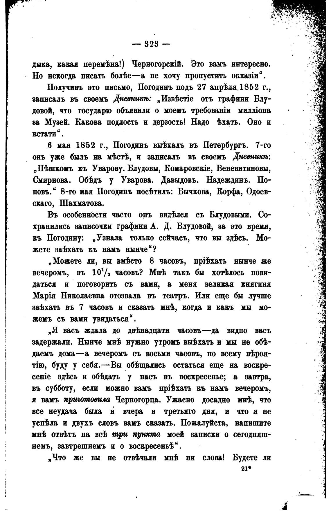 въ Погодину: „Узнала только сейчасъ, что вы зд•ђсь. Мо-