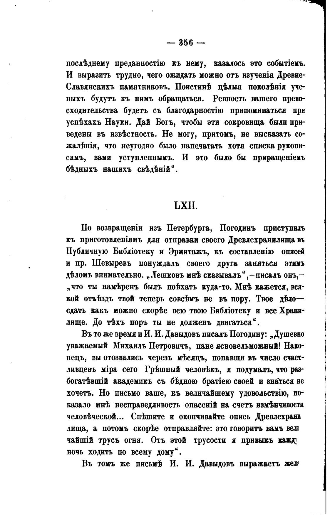 Въ то же время и И. И. Давыдовъ писадъ Погодину: „Душевно