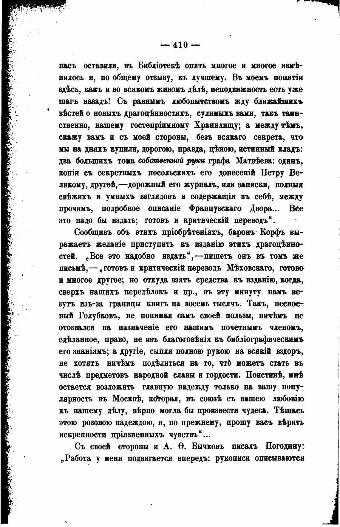 Съ своей стороны и А. е. Бычвовъ писалъ Погодину: