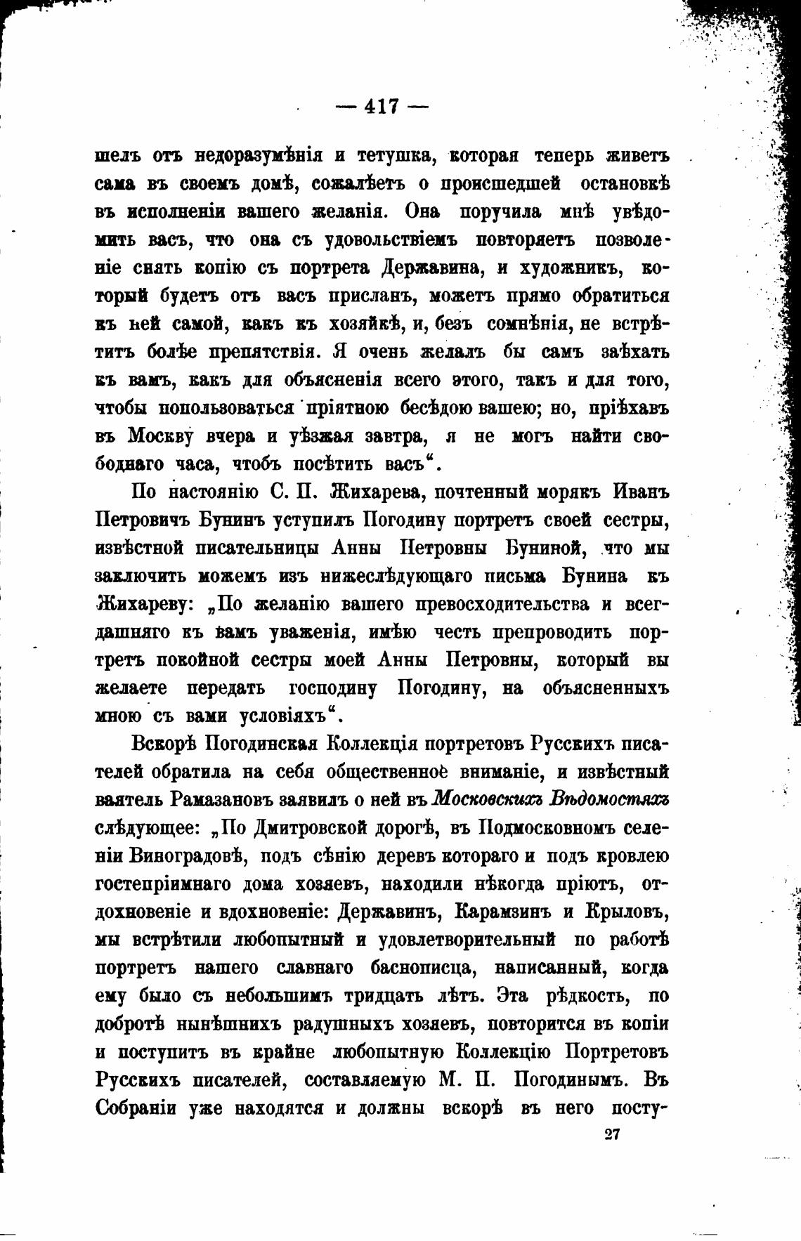 ВсворгЬ Погодинсваа портретовъ Руссвихъ писа-