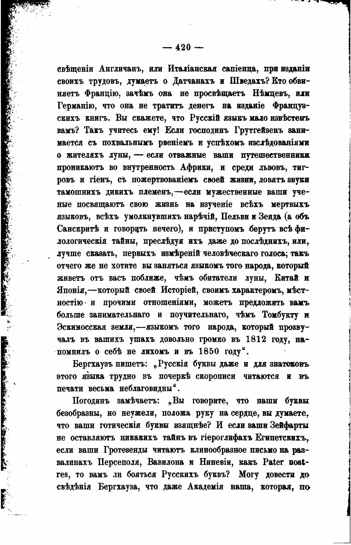 Погодинъ зажаетъ: „Вы говорите, что ваши буввы