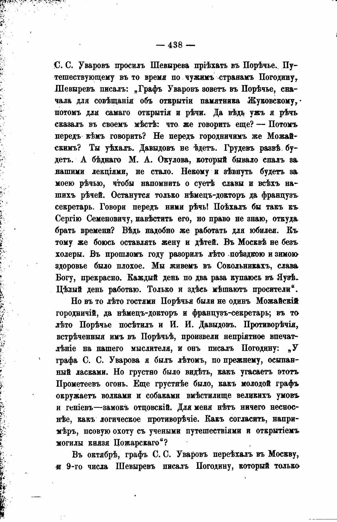 Шевыревъ писалъ: „Графъ Уваровъ зоветъ въ Пофчье,