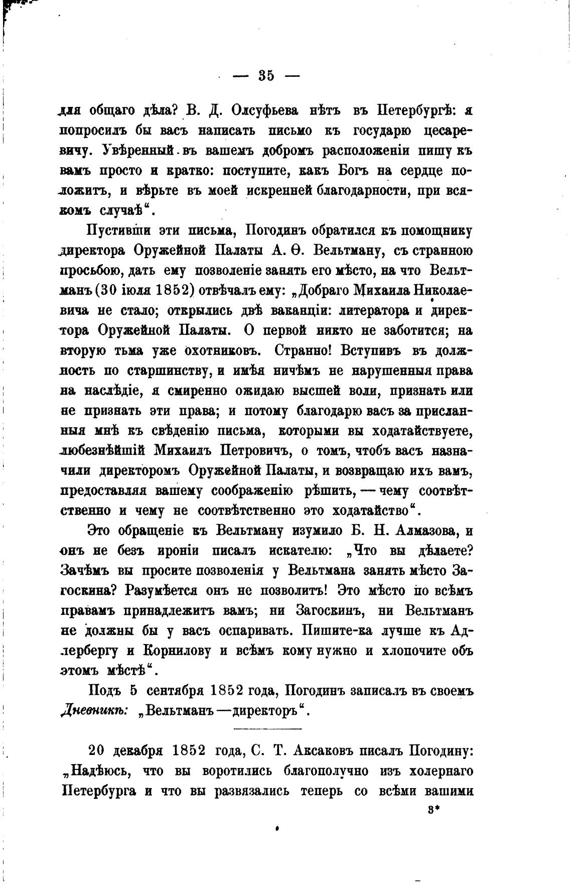 Подъ 5 сентября 1852 года, Погодинъ записалъ въ своемъ