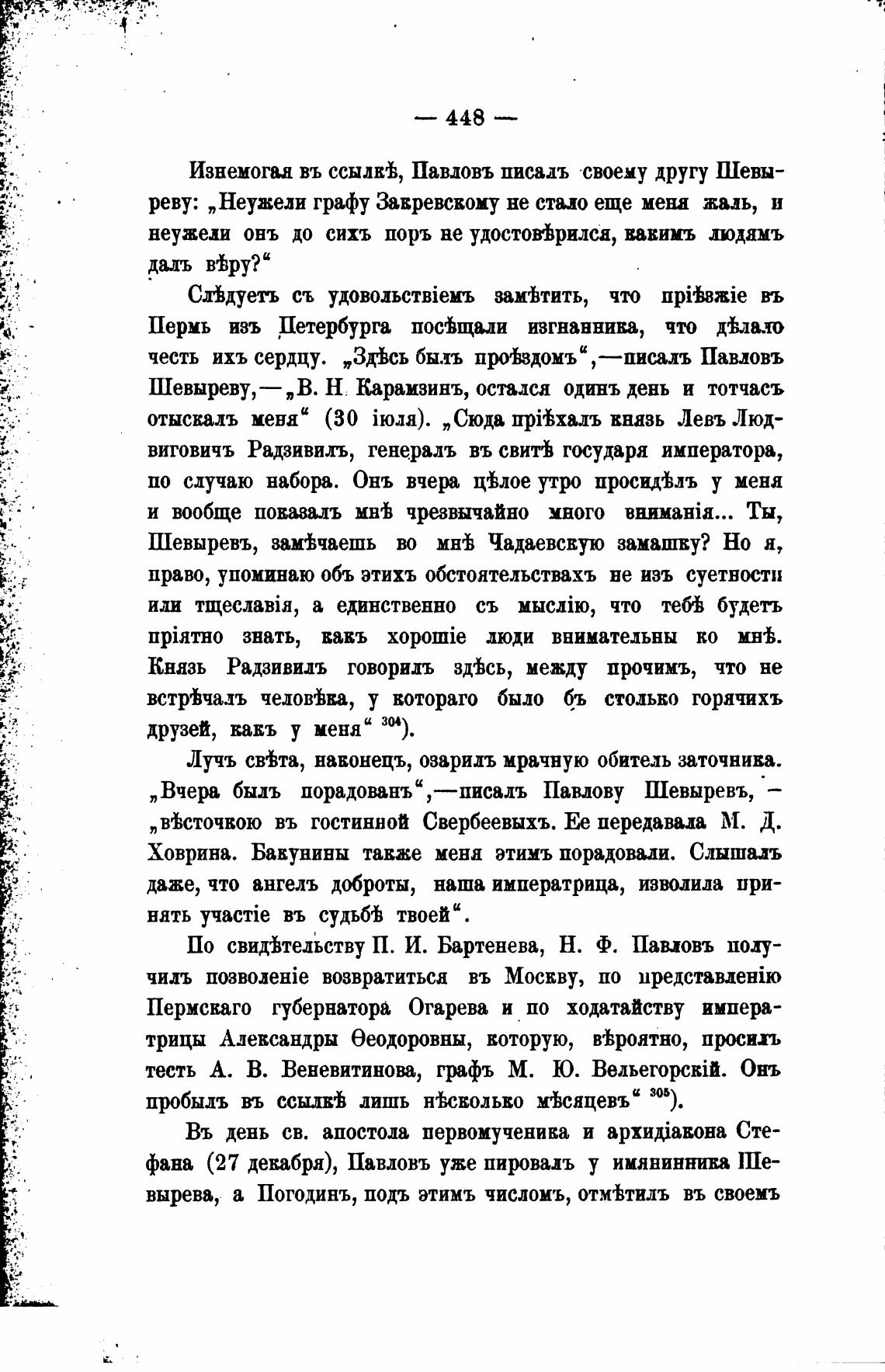 Изнемоги въ ссылв±, Павловъ писалъ своему другу Шевы-