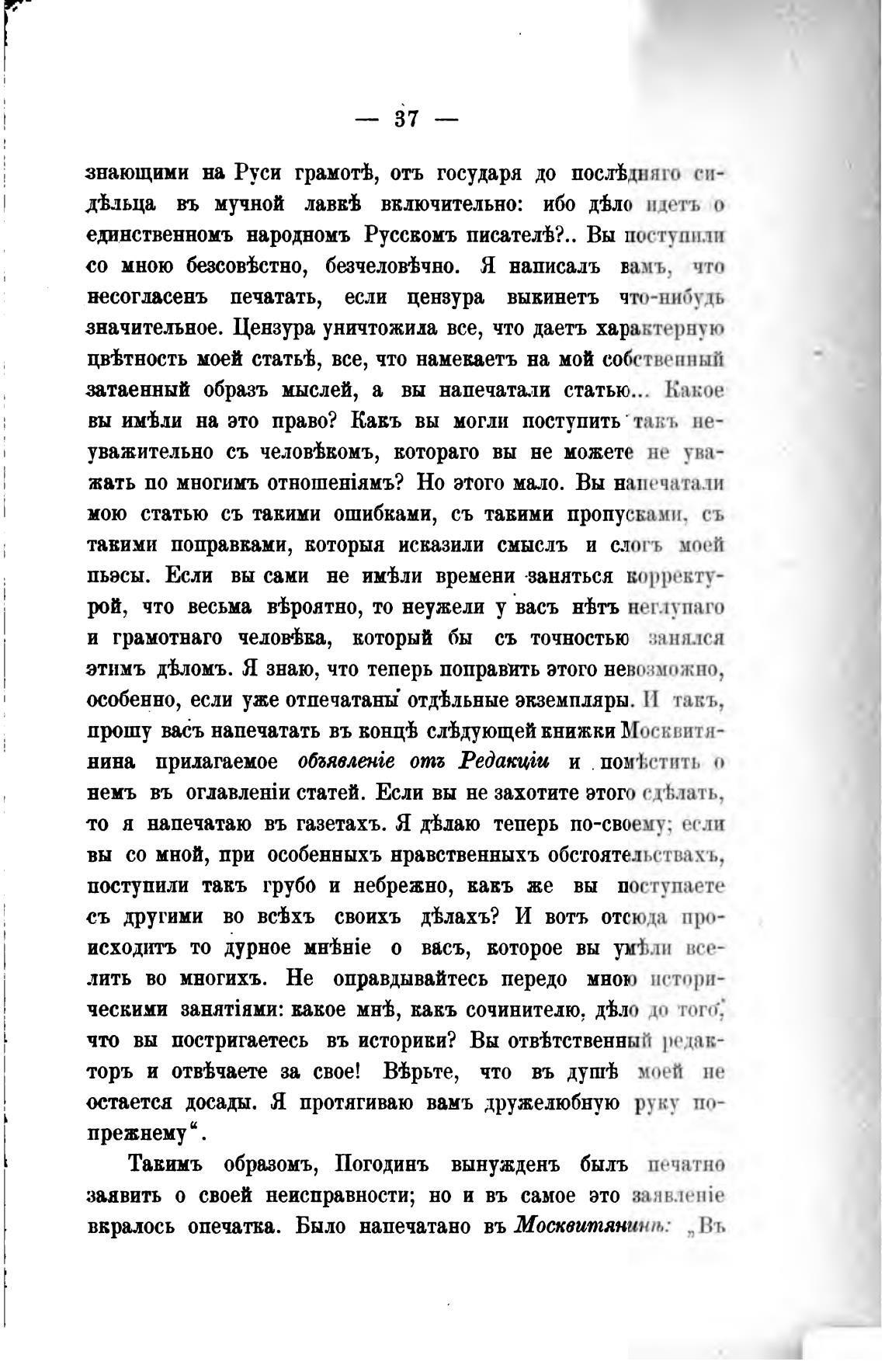 Такимъ образомъ, Погодинъ вынужденъ быль