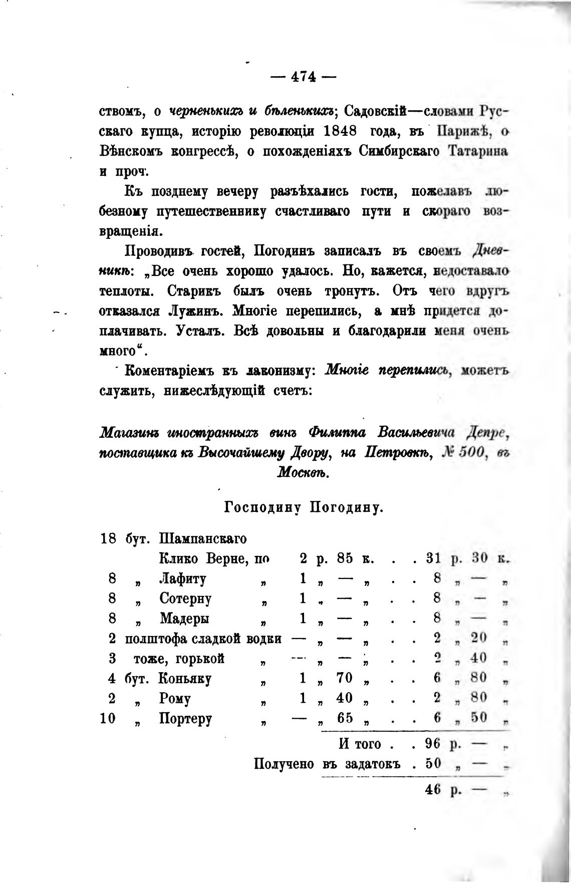 Проводивъ. гостей, Погодинъ записа.ть въ своемъ Днев-
