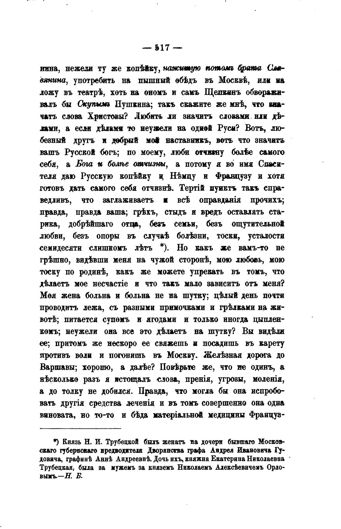 Трубецкая, была ва мужемъ за вняземъ Николаемъ Алевс±евичехъ Орло-
