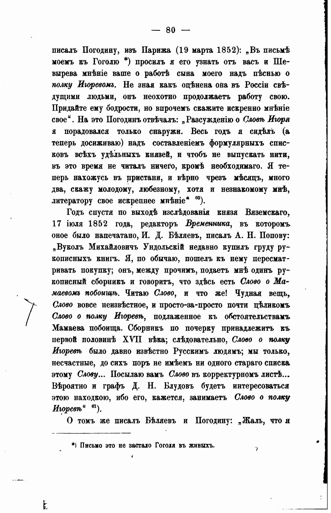 *) Письмо это не застаио Гоголя въ живыхъ.