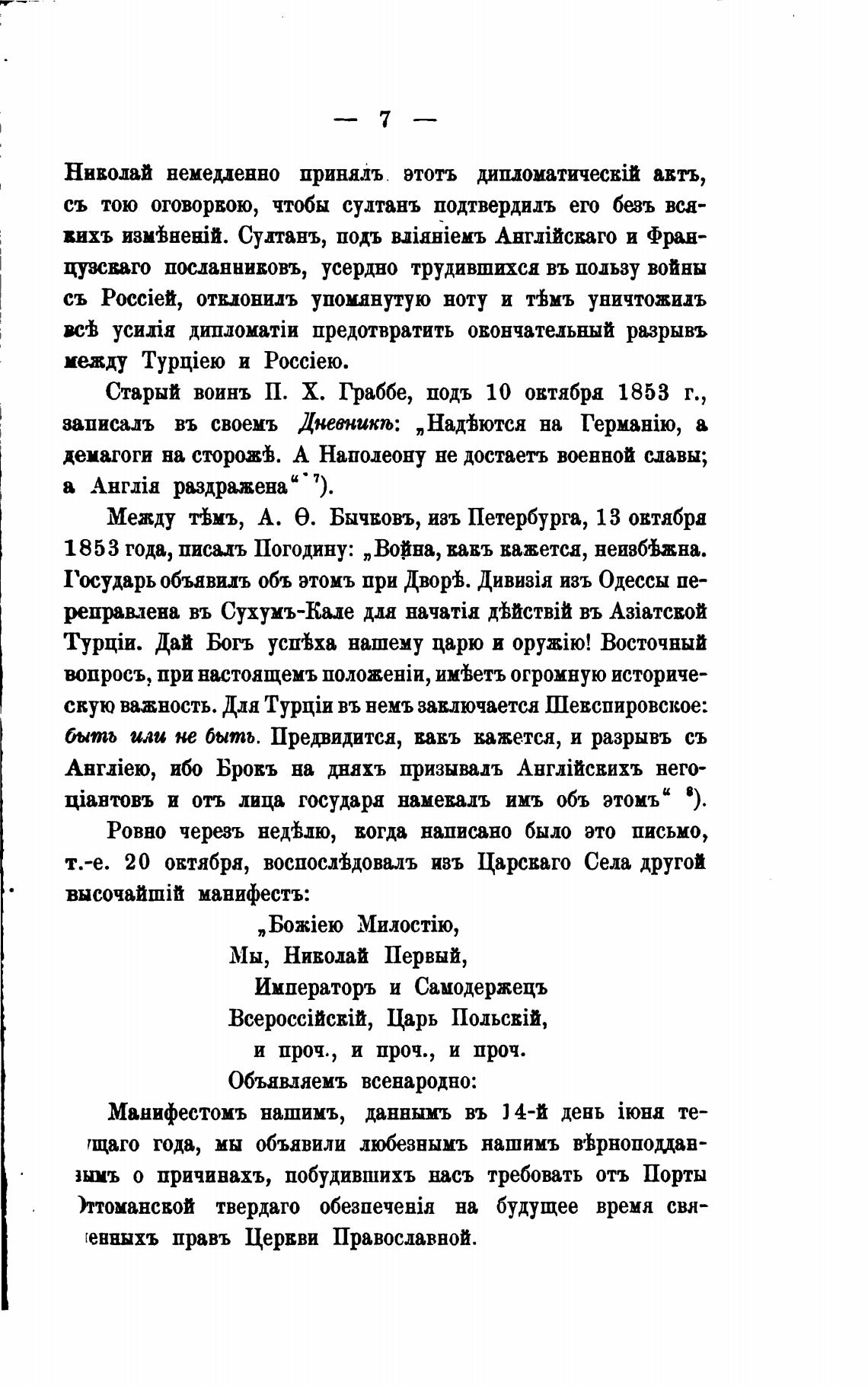 Старый воинъ П. Х. Граббе, подъ 10 октябра 1853 г.,