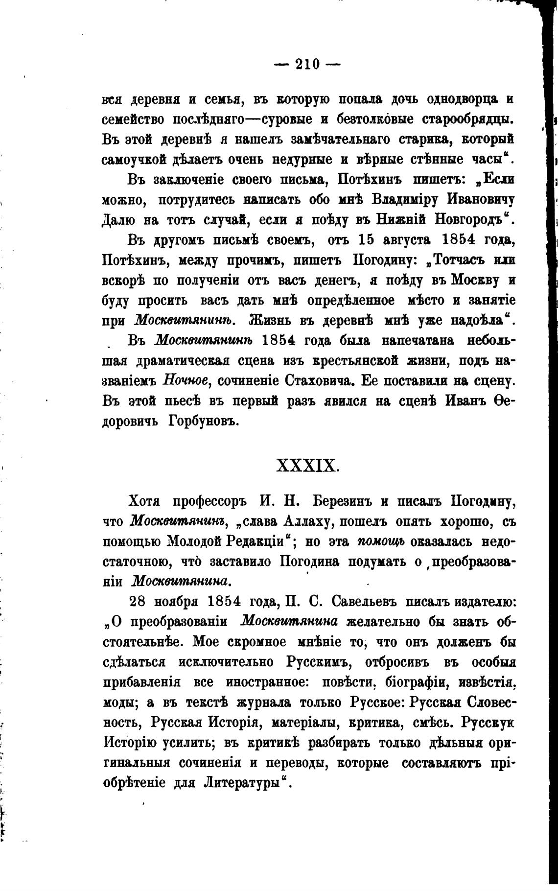 28 ноабра 1854 года, П. С. Савельевъ писалъ издателю: