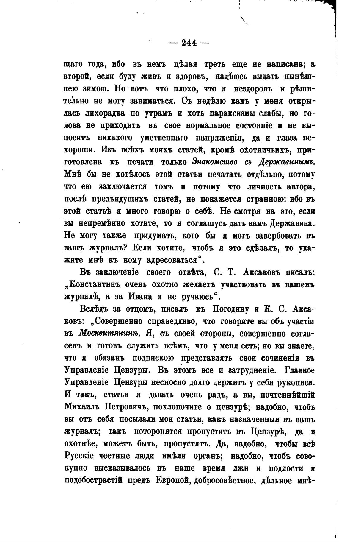 ВсМдъ за отцомъ, писадъ кь Погодину и К. С. Акса-