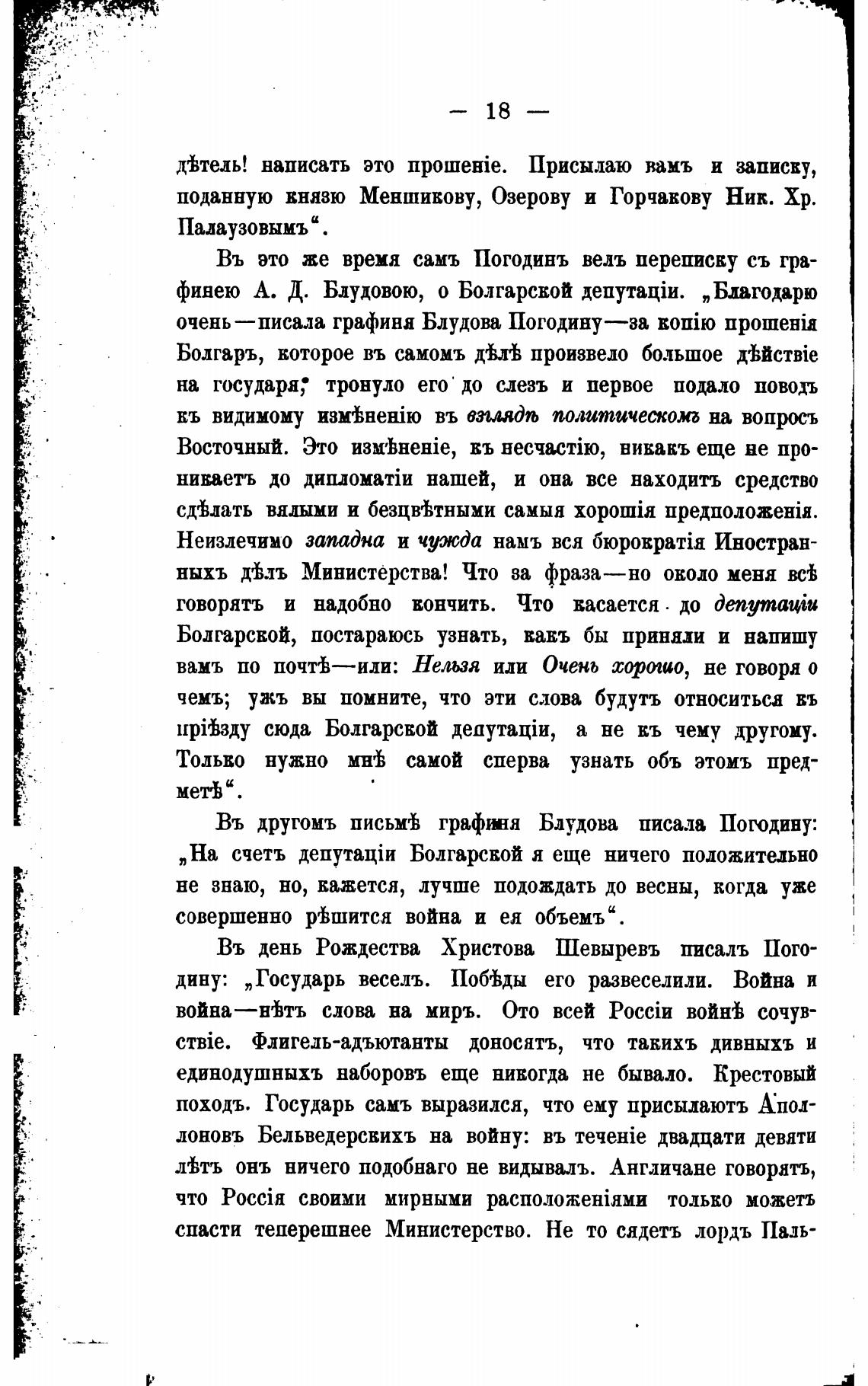 очень —писала графина Блудова Погодину—за