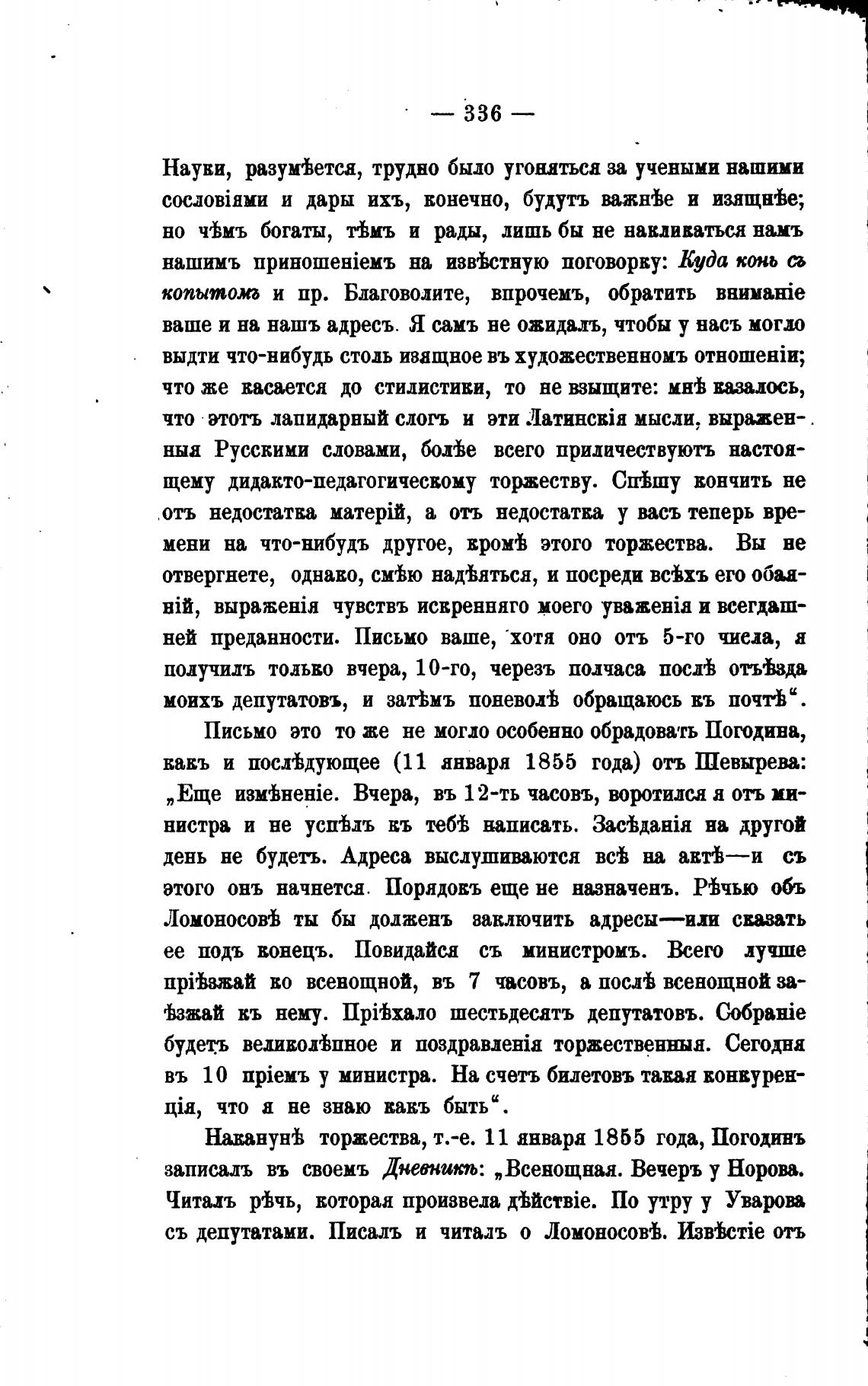 вавъ и посндующее (11 анваря 1855 года) отъ Шевырева: