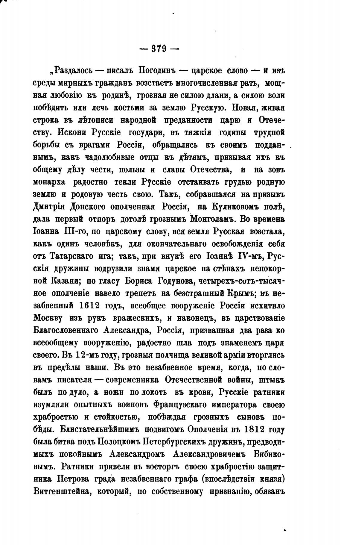 „ Раздалось — писалъ Погодивъ — царское слово
