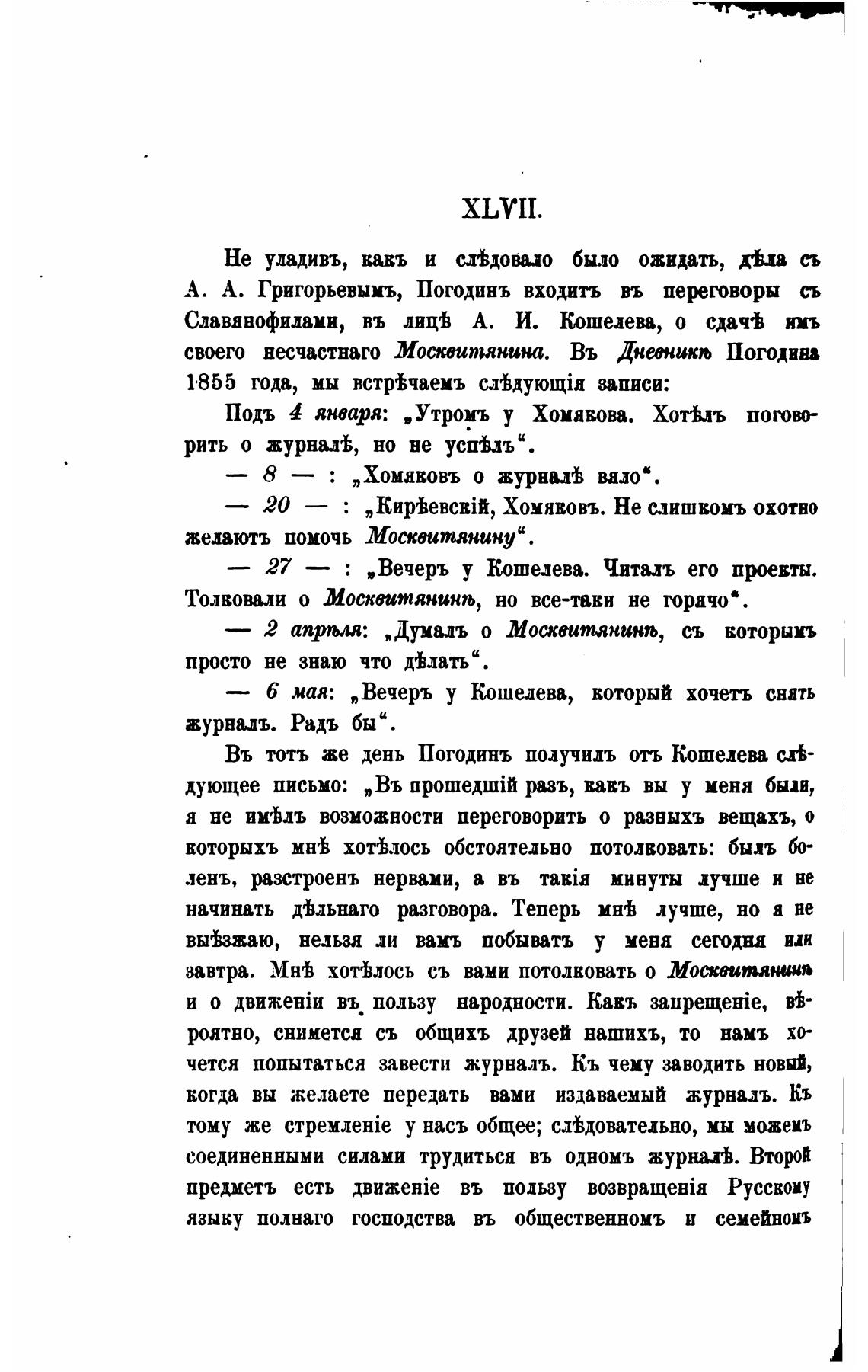 Въ тотъ же день Погодинъ подучилъ отъ Кошелева см-