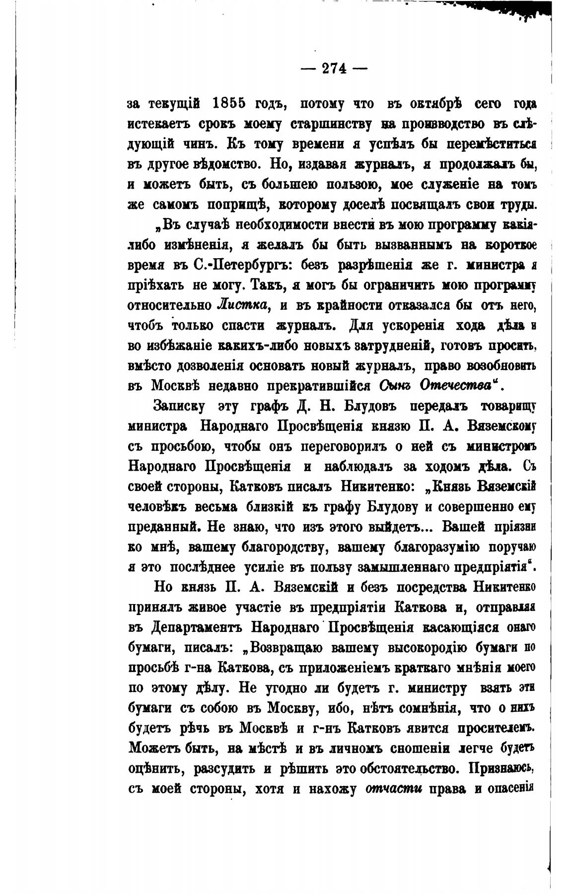 своей стороны, Катвовъ писалъ Нивитенво: „Князь Ba3eMcxii