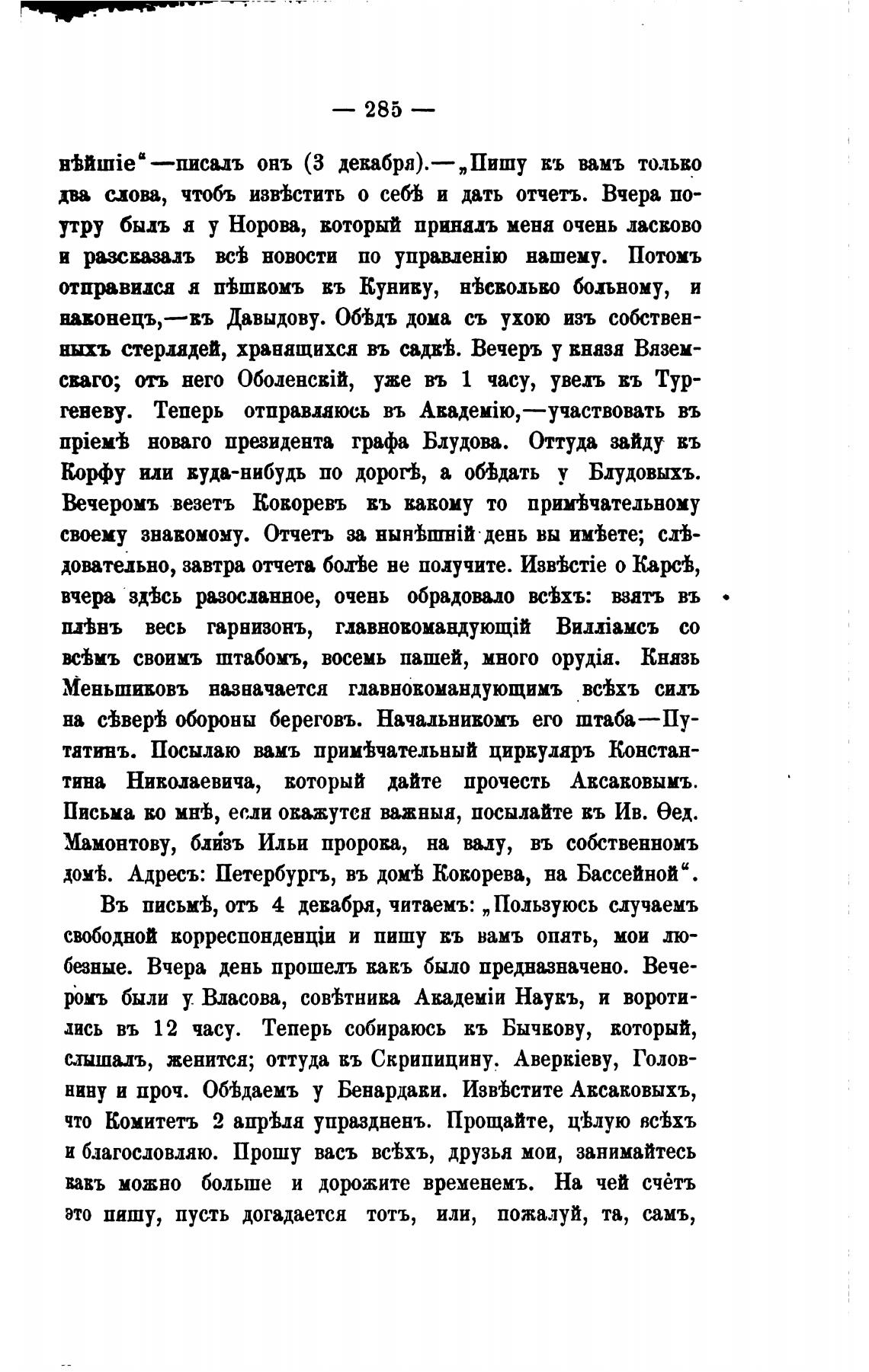 Въ письм'Ь, отъ 4 декабря, читаемъ: „ Пользуюсь случаемъ