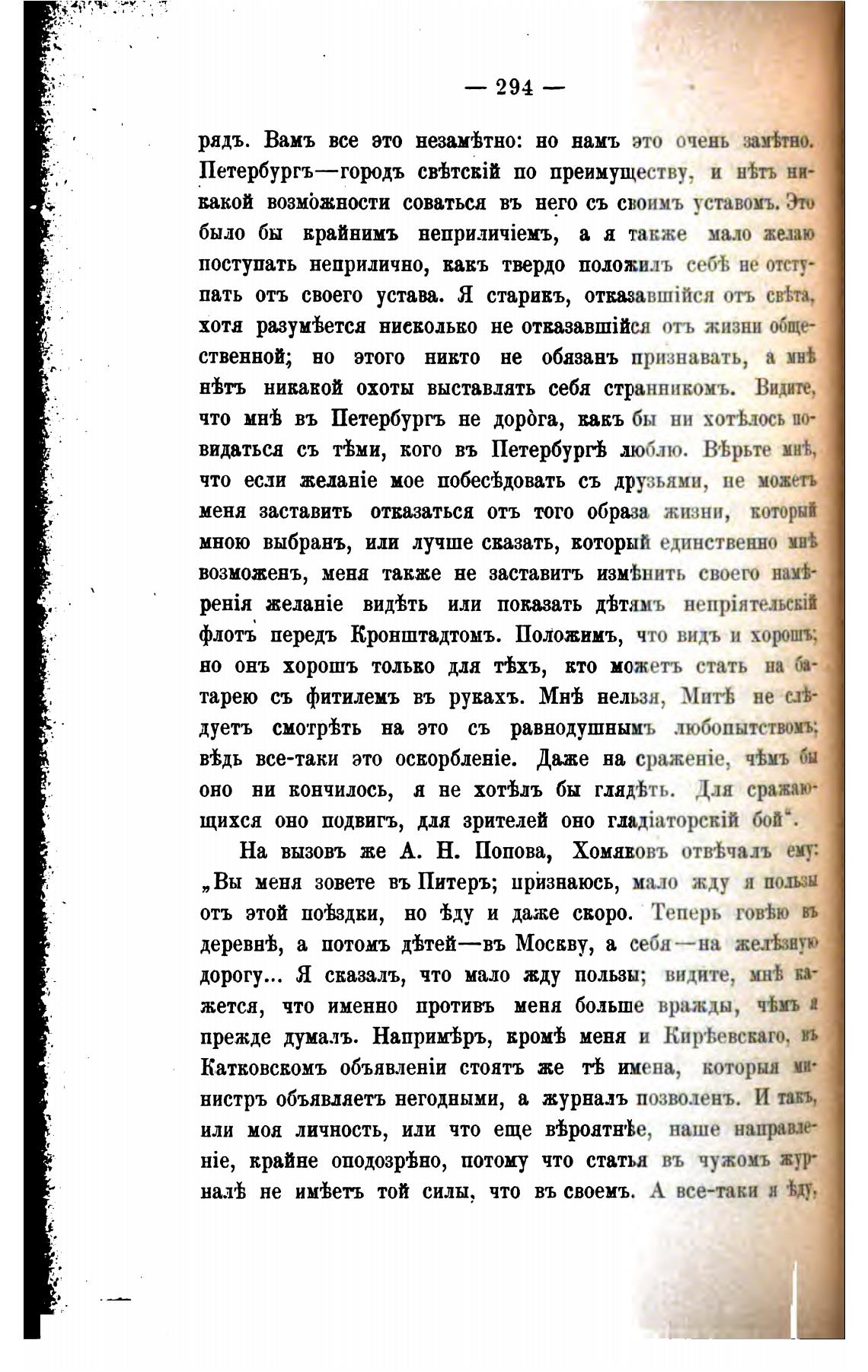 На вызовъ же А. Н. Попова, ХОМЯЕОВЪ отйчалъ ему:
