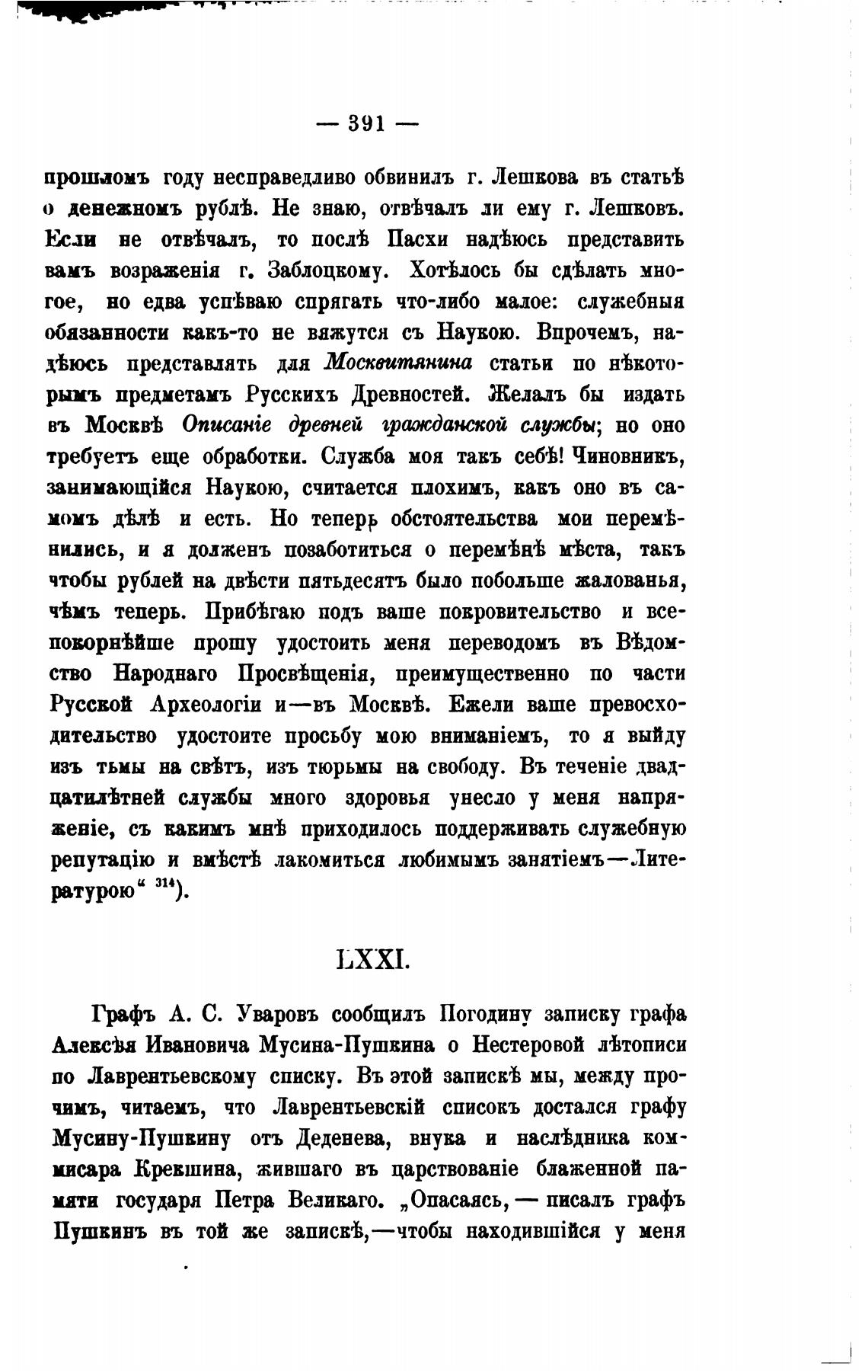 Грфъ А. С. Уваровъ сообщилъ Погодину записку графа