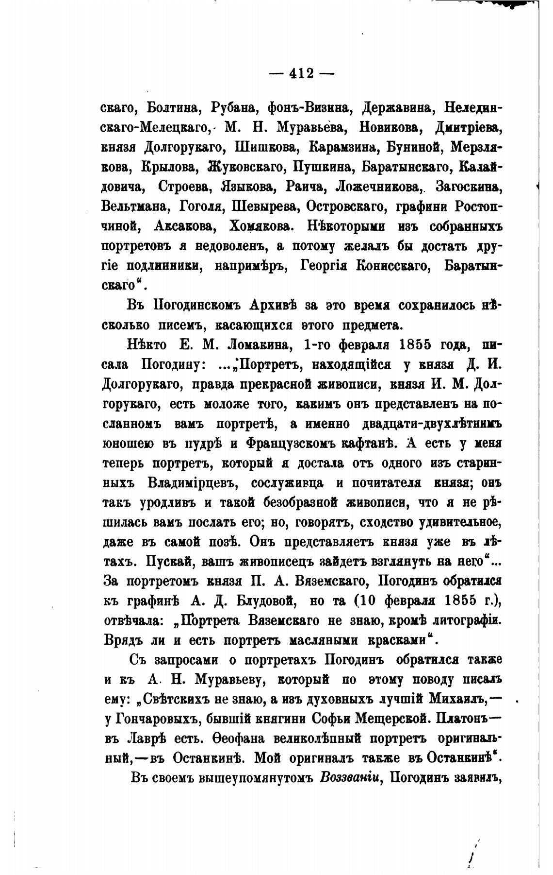 Съ запросами о портретахъ Погодинъ обратили также